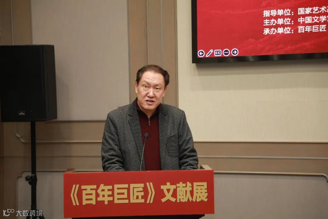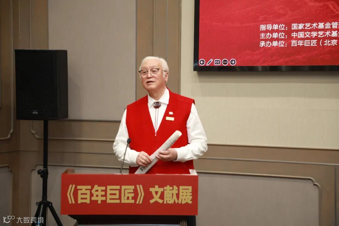 中国文学艺术基金会秘书长向云驹在致辞中表示,《百年巨匠》用影像记载历史、用光影传承文化,已成为传播中华优秀传统文化、增强文化自信的重要成果。《百年巨匠》文献展系统呈现了百位文化巨匠珍贵文献、历史影像和经典作品,将进一步深化对巨匠精神的挖掘整理与研究,进一步发现巨匠独特的时代价值。希望让更多的人特别是青少年,了解这些巨匠在中华民族伟大复兴历史进程中的精神追求与艺术探索,感受他们与时代的深刻交汇,激发大众对中华优秀传统文化进行创造性转化、创新性发展的认识,为建设文化强国,为推进强国建设、民族复兴伟业增添精神力量。
