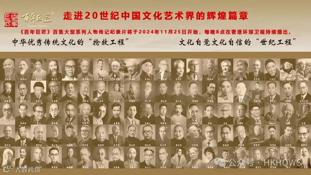 《百年巨匠》百集大型系列人物传记纪录片将于2024年11月25日开始,每晚8点在香港环球卫视持续播出。