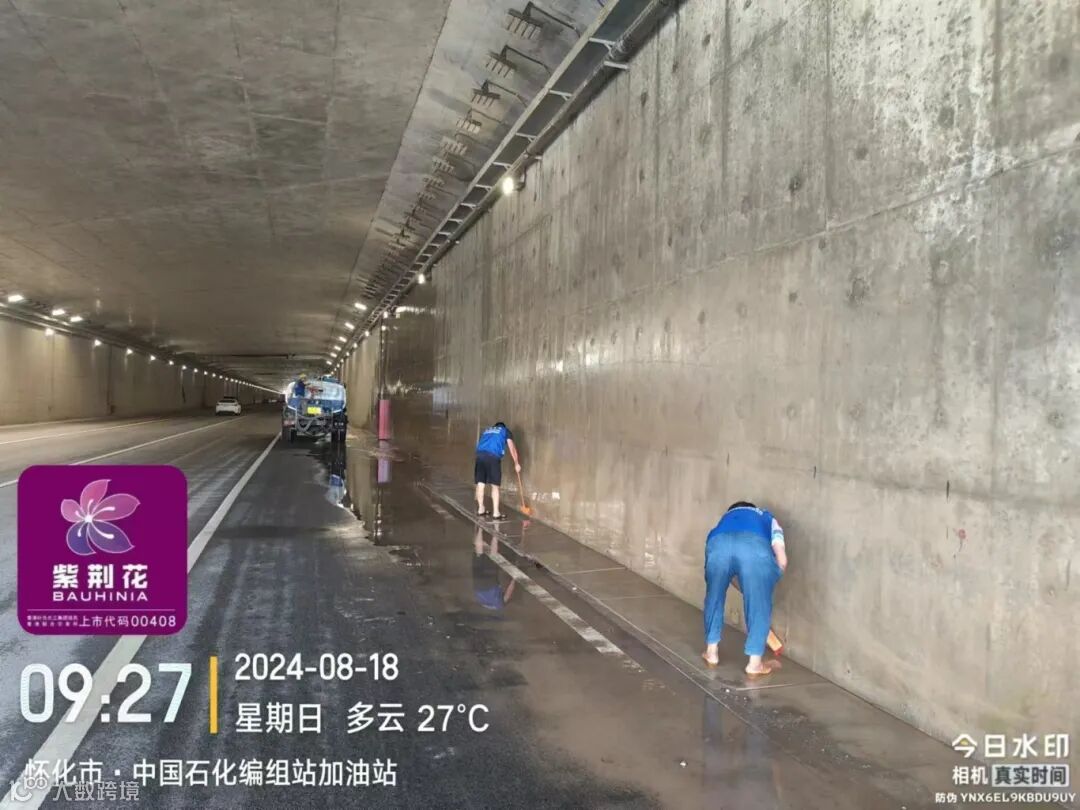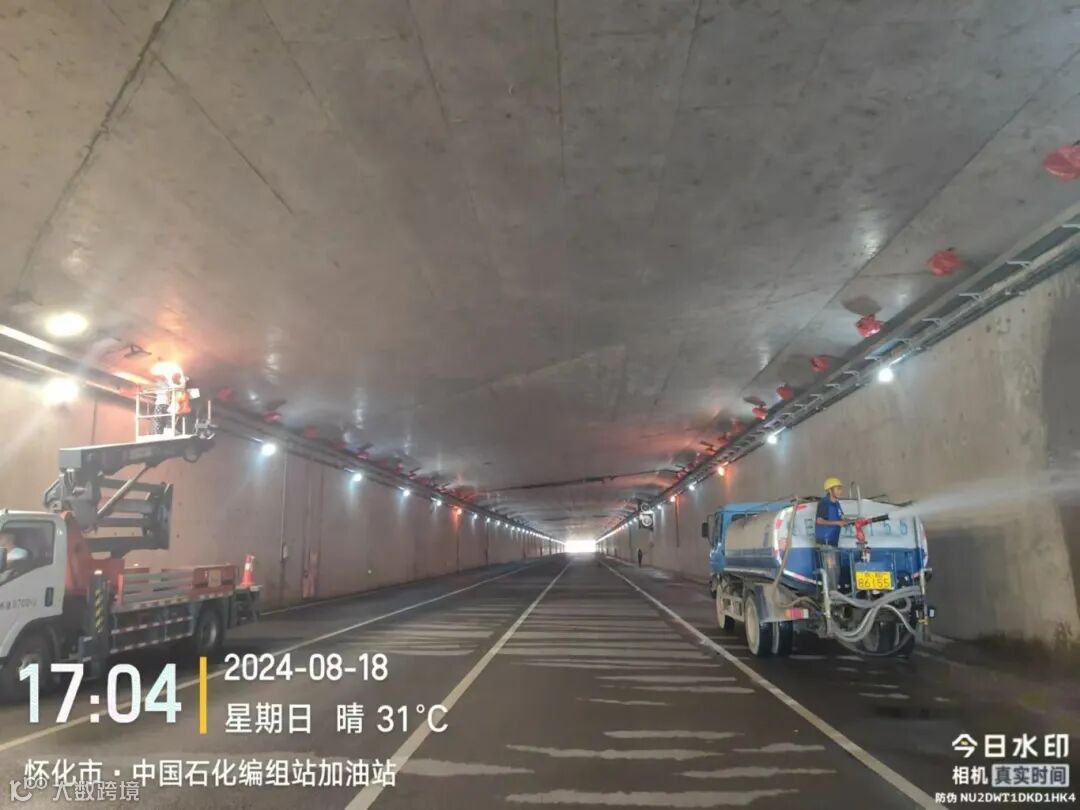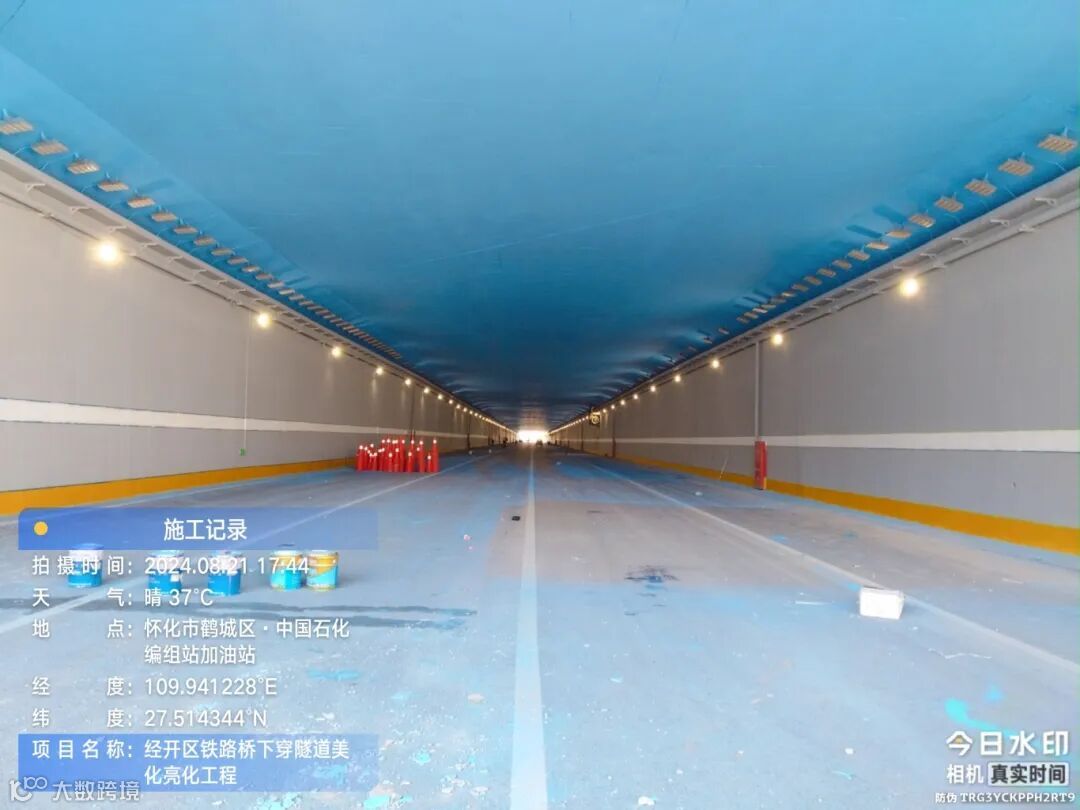 近日,怀化陆港隧道美化工程单边顺利通车,该项目被称为“怀化城内最美网红隧道”,整体面积达6万平方米,其中隧道内墙体和顶面,结合天空的效果,选用紫荆花最出彩的天空蓝。