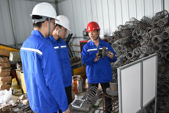 “看,这就是之前强调过的锚具四件套……”“吉林地区的项目对锚垫板厚度有特殊的要求,不能低于28mm,咱们拿游标卡尺现场测一下……”物供中心副主任赵志伟带着新来的实习生到现场学习物资供应相关知识。
