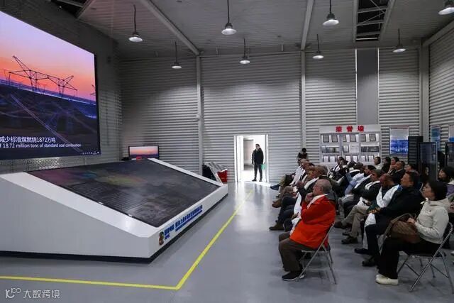 10月10日,驻华使节们在国家电投集团黄河上游水电开发有限责任公司。(主办方供图) 板上发电、板下牧羊。2015年,首批入驻园区的国家电投集团黄河上游水电开发有限责任公司与当地签订协议,过去守着黄河叹气的塔拉滩人成了“牧光互补+水光互补”新发展模式的见证人。