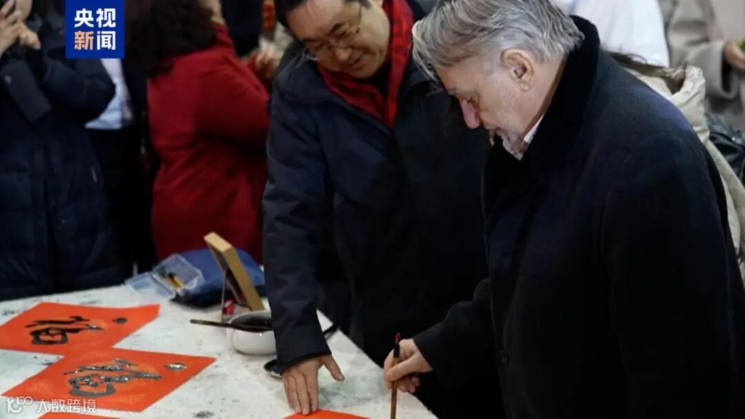 精美的景泰蓝工艺品、特色的烙画葫芦、别致有趣的吹糖人……走进年货节会场,琳琅满目的非遗文创产品更是让使节们目不暇接。驻华使节和中国艺术家们一起写福字,为廊坊市民送上新春祝福。