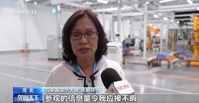 苏里南驻华大使张碧芬:参观的信息量令我应接不暇。这是我第一次来河北,行程非常有趣,内容都与绿色发展和清洁能源有关。在乘高铁来的路上,我们看到了风力发电机,还有太阳能板。这里确实是实现绿色发展的门户。