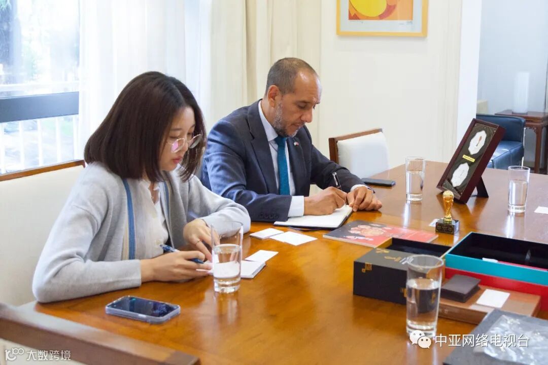 中亚网络电视台总编辑刘奕同乌拉圭驻华驻华大使馆领事塞尔西奥·德亚巴列会面交流现场