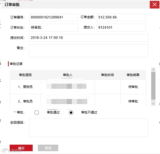 有权审批人(注:订单复核、审批权限可由三级公司确定并统一配置给相关管理人员)点击“物料审批”—“订单审批”(根据设置权限不同,一般需审批两次)。