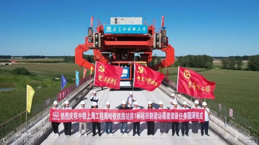8月17日,随着最后一榀箱梁的架设成功,哈铁铁路一标段裕田制梁场承担的692榀正线箱梁预制及运架任务宣告全面圆满完成。