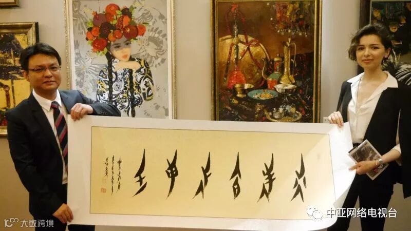At the event, The Secretary General of the Shanghai Cooperation Organization, Mr.Rashid Alimov, accepted our TV station’s interview and strongly recommended us to interview Ms.Fidan Kim, a contemporary artist of Azerbaijan at the exhibition. Under the request and witness of the Secretary General, Ms.Fidan Kim was given a piece of China’s Nvshu calligraphy by our TV station, which means " Openness Cooperation Mutual benefit ", written by Jiangyong’s intangible cultural heritage descendant, Hu Xin.