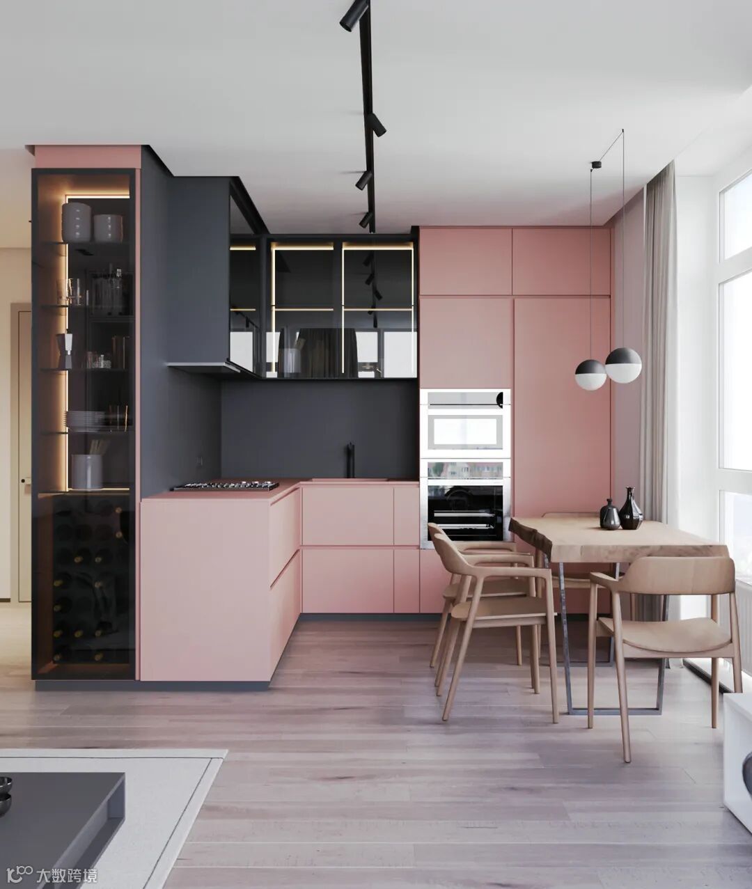 橱柜颜色大胆出挑,瞬间抓住空间眼球,或清新、或个性,或沉稳,能为厨房空间增色。