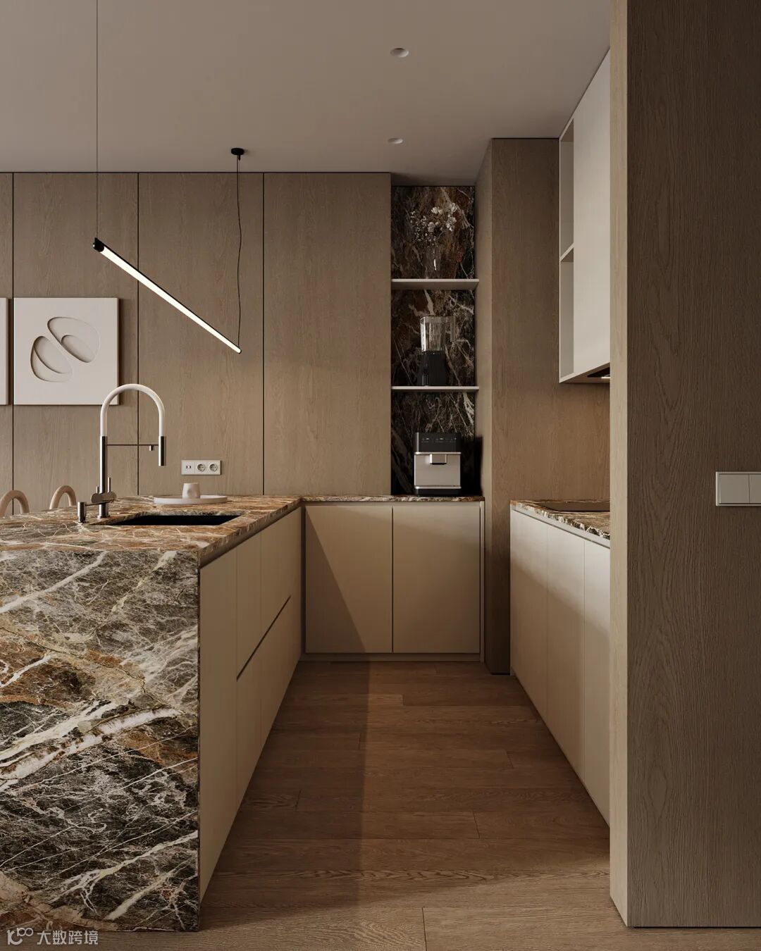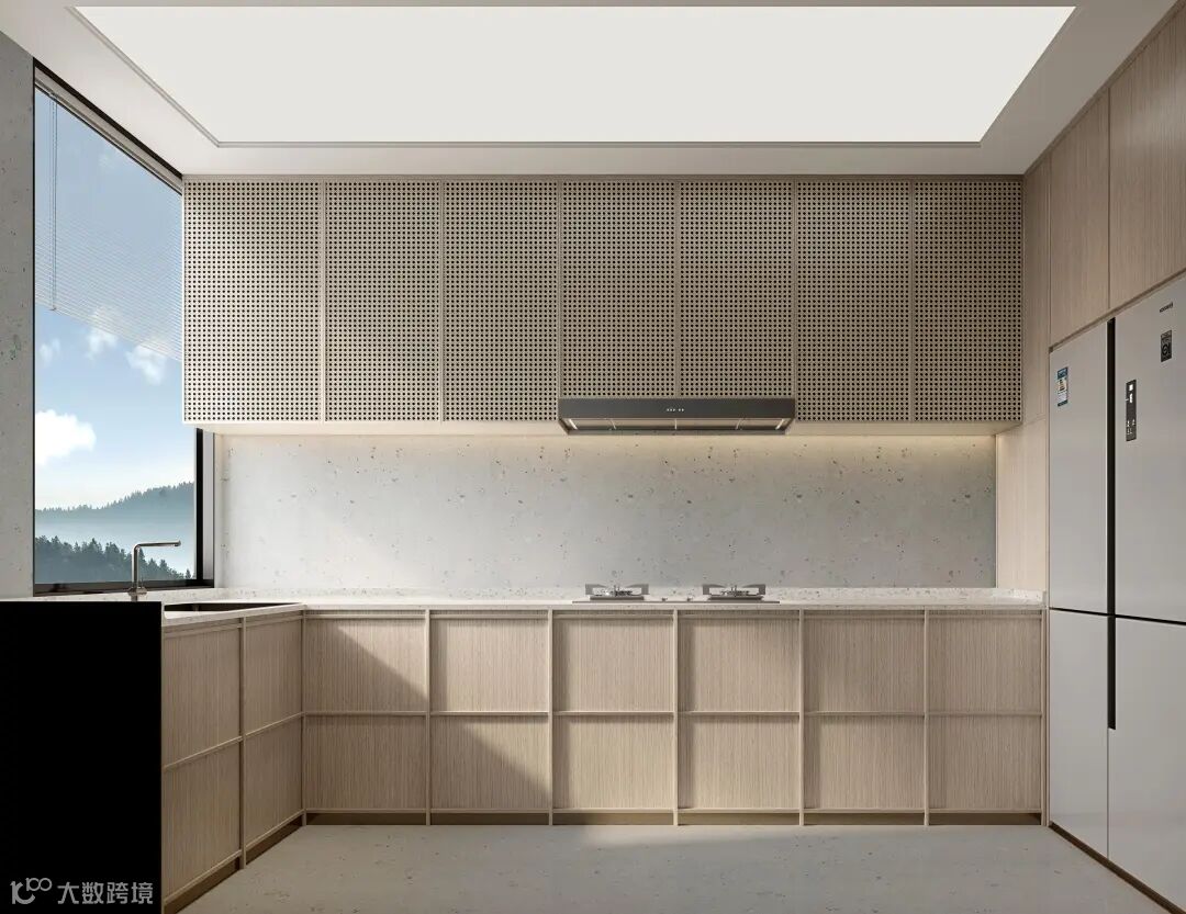 这款橱柜,以温润木色为要素,自带自然高级感,轻松点亮厨房空间。