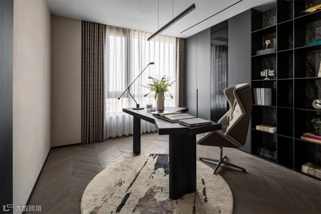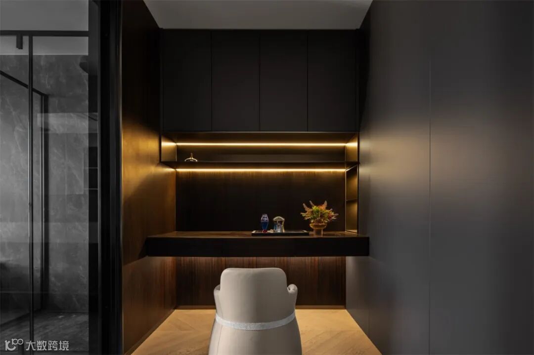 卧室与卫生间与梳妆台、衣帽间、书房紧密相连,形成一条高效便捷的日常动线,完美契合使用者的日常习惯。