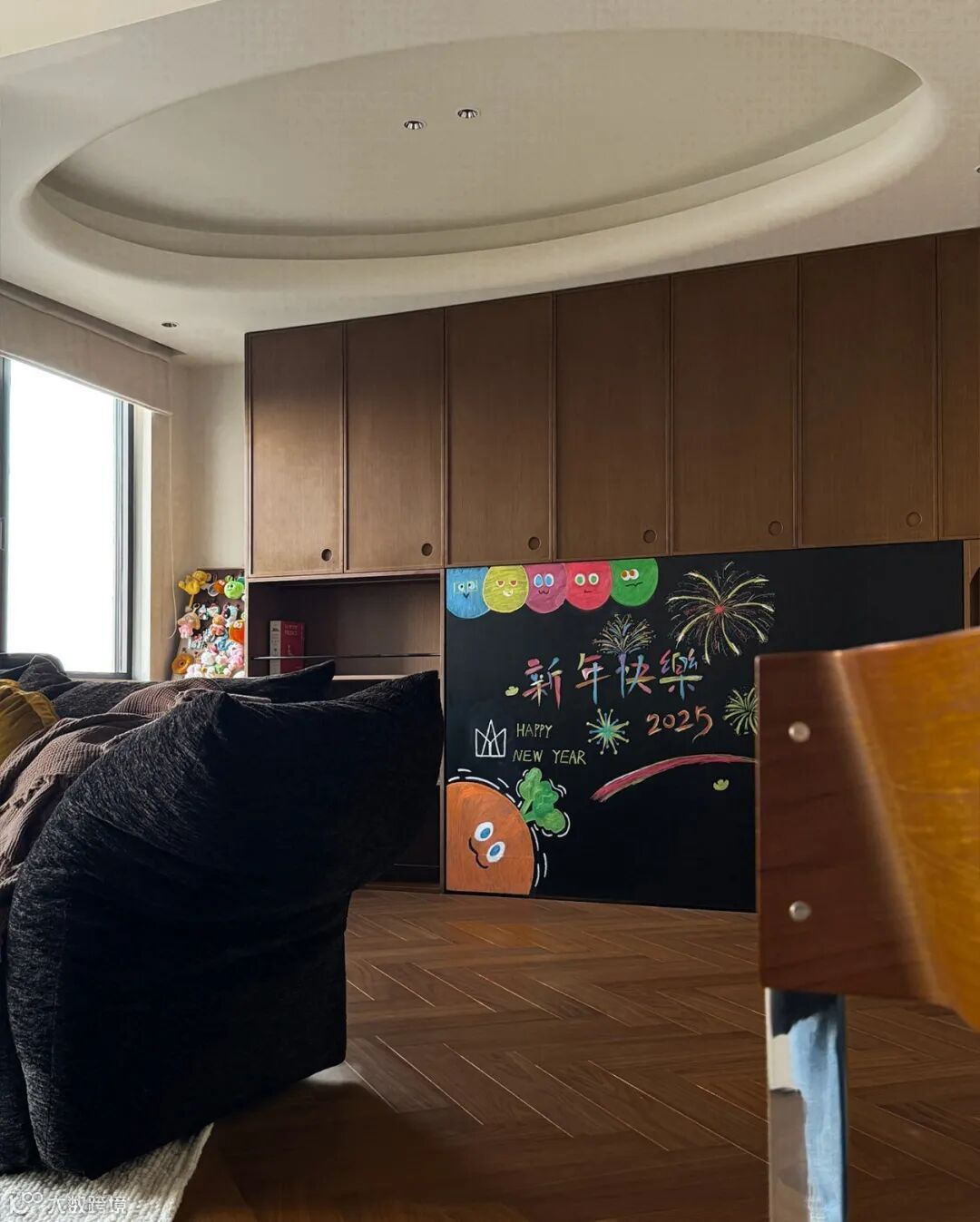 游乐区,半高的书柜和黑板墙,保持足够的视觉通透性,又可作为真正的书房来使用。