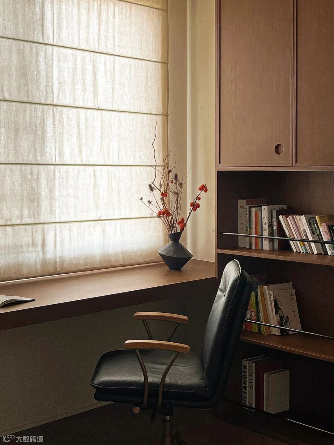 侧边柜子,容易被轻视的柜体深度,做成可以拐弯的坐榻、床头柜,解决了生活实际的问题。