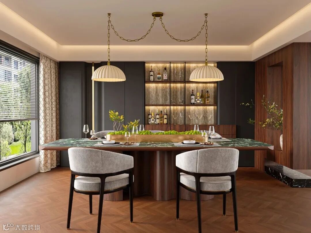夜幕降临,它又成了小酌时光的背景板,酒杯与餐边柜的木纹相碰,撞出日子该有的松弛感。