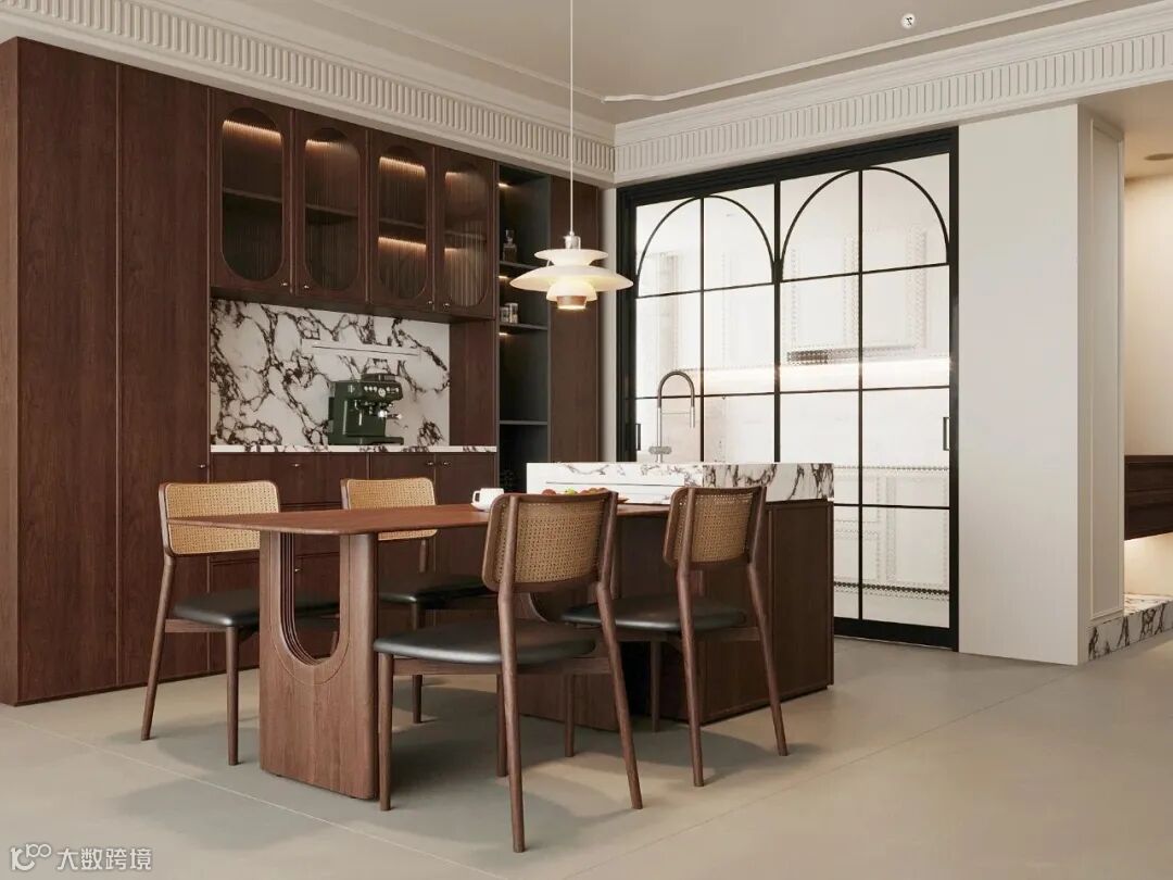 法式圆弧细节点缀,精致尽显,让用餐空间满是馥郁的法式浪漫。