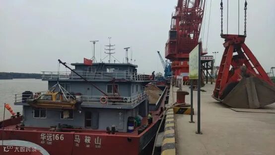 ▲“华远166”号货船顺利靠泊马鞍山市和县码头