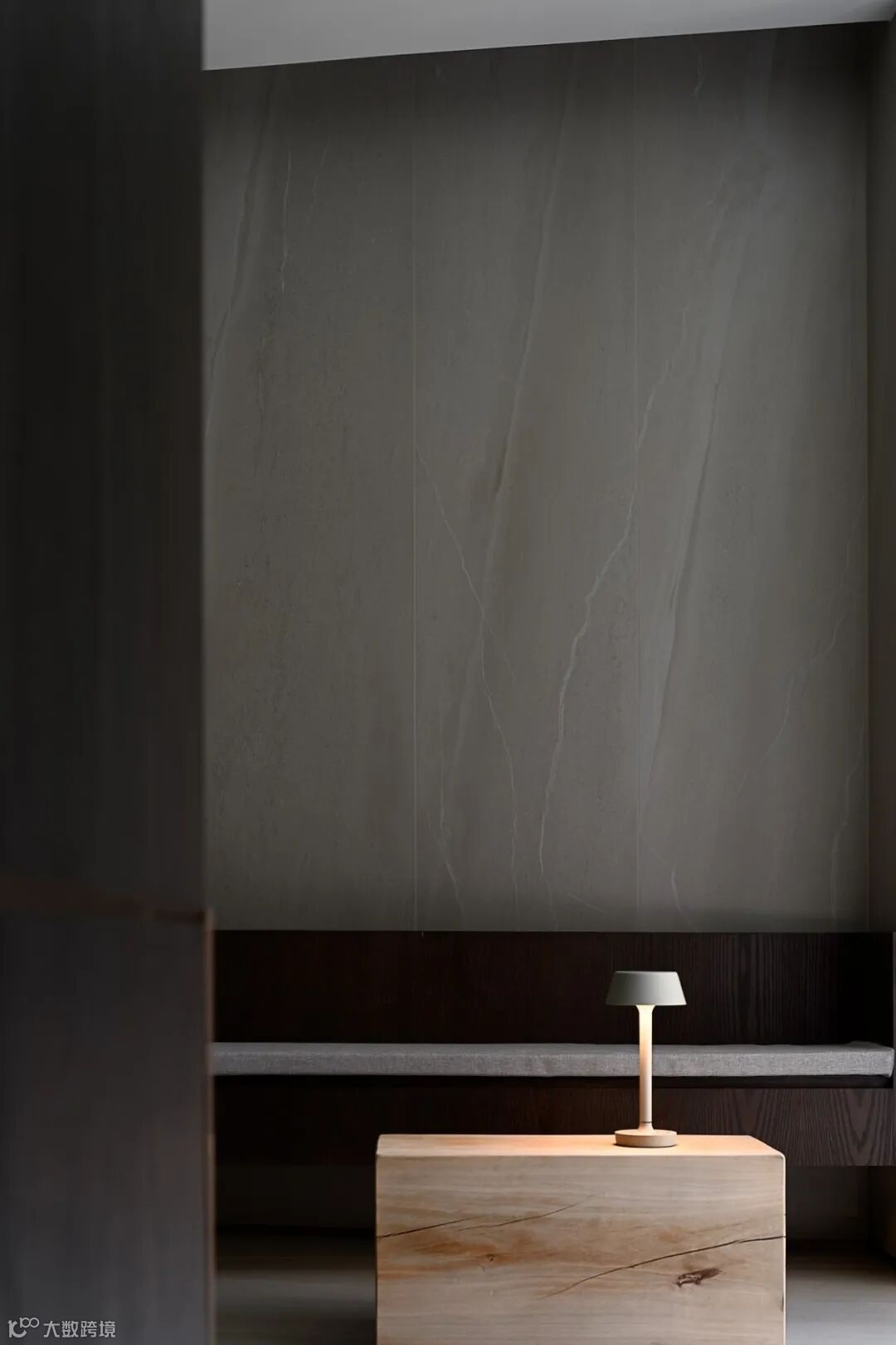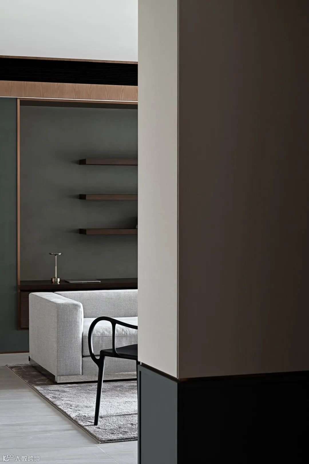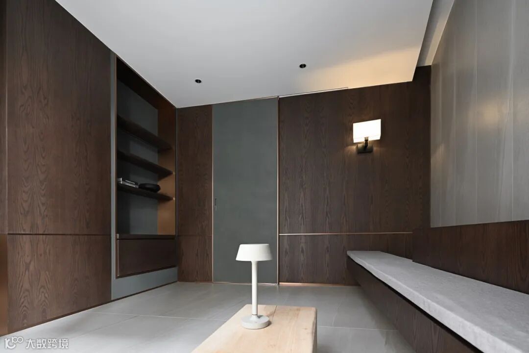 简单的陈设并不会枯燥,深色的木饰面与金属边的搭配,烘托复古意境,使空间极具氛围感染力。