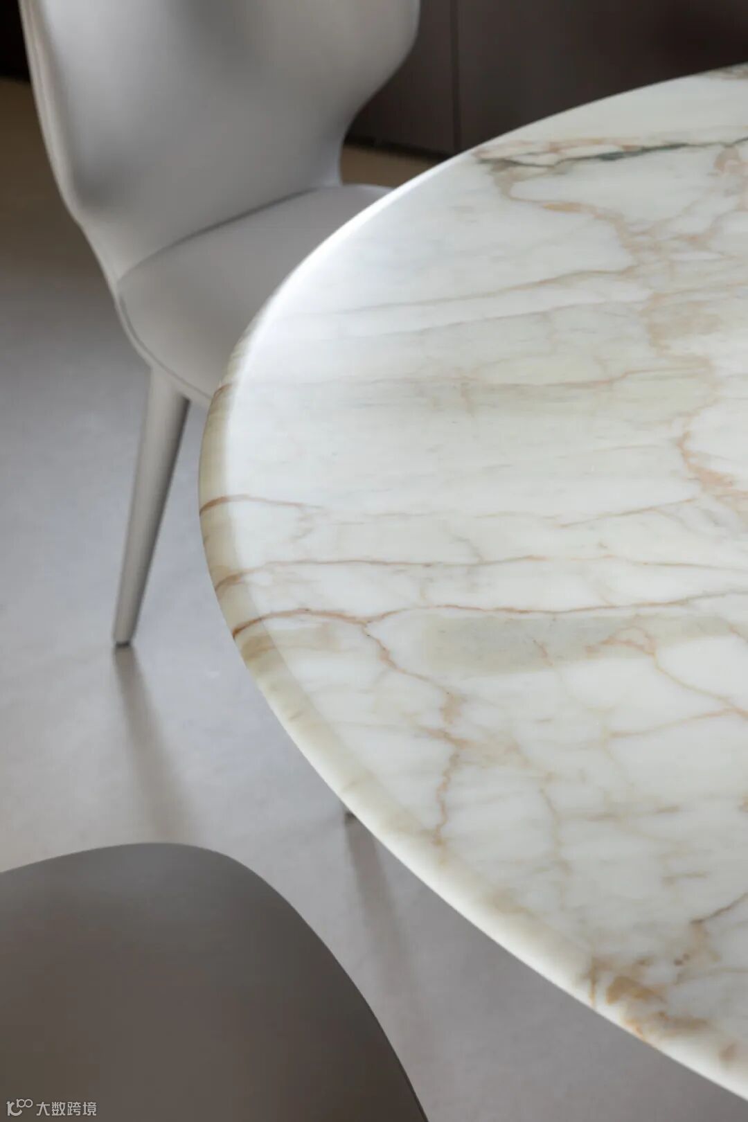客餐厅并无间隔,以极简干净的形制、点到为止的深浅色对比,构建出家庭生活中高质量的就餐、社交场景。