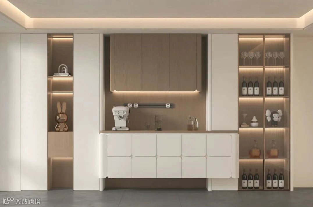 柜体设计,展示与收纳兼备,内置灯带点亮,营造出空间高级的氛围感,成为提升空间格调、彰显品位的存在。
