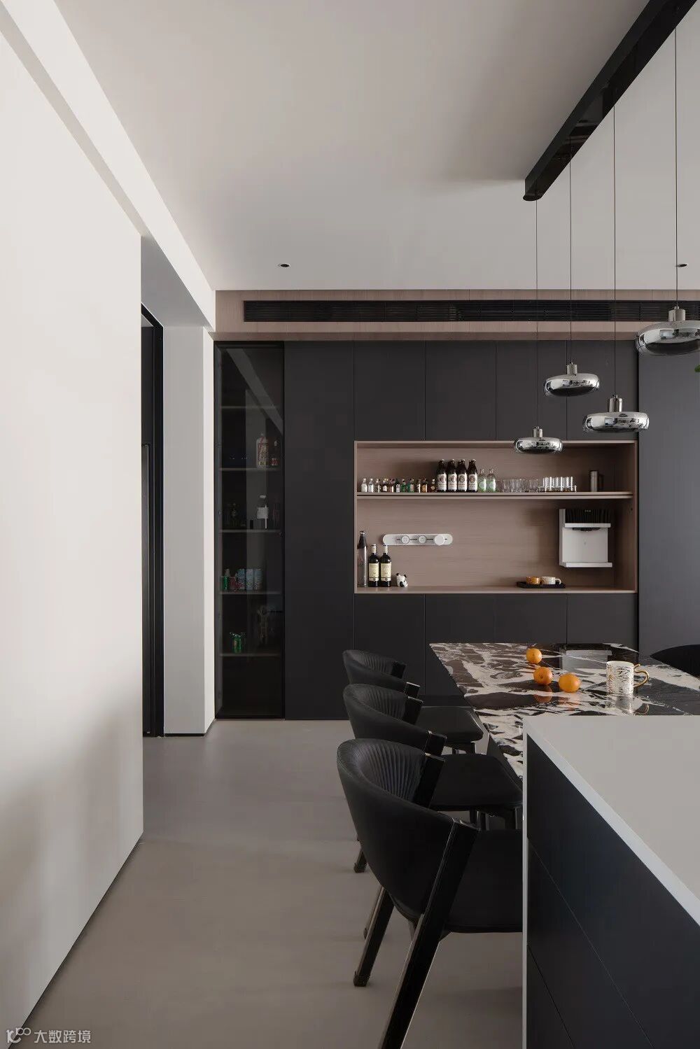 餐边柜既可以作为水吧区使用,也可以转变为西厨区,实现一物多用,实现空间利用的最大化。