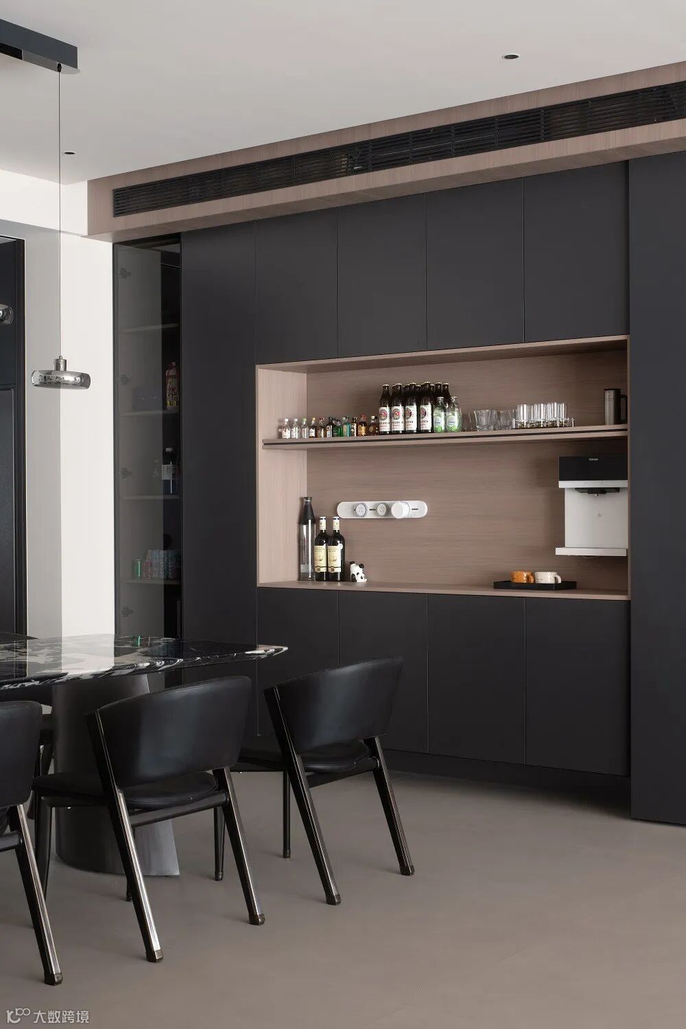 餐边柜,将现代家居美学与实用功能完美融合。黑色柜体搭配浅木色内搭,层次分明,尽显低调奢华。