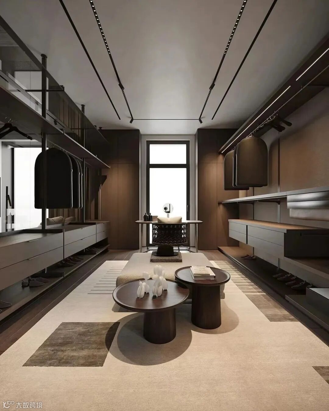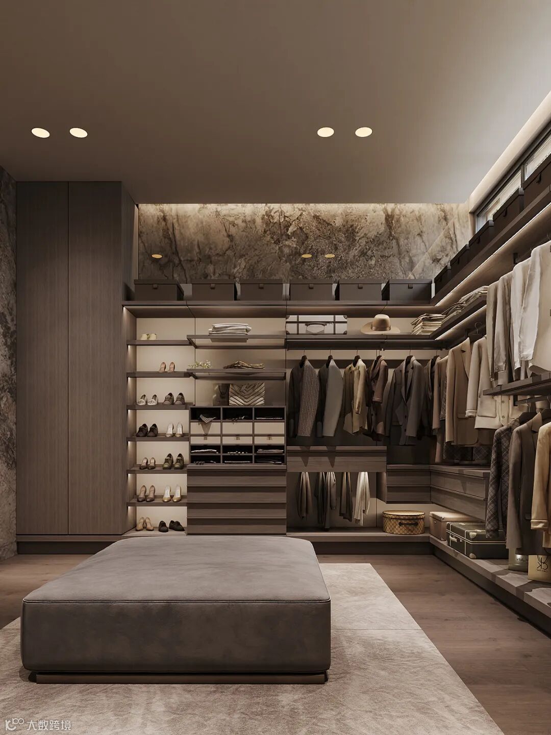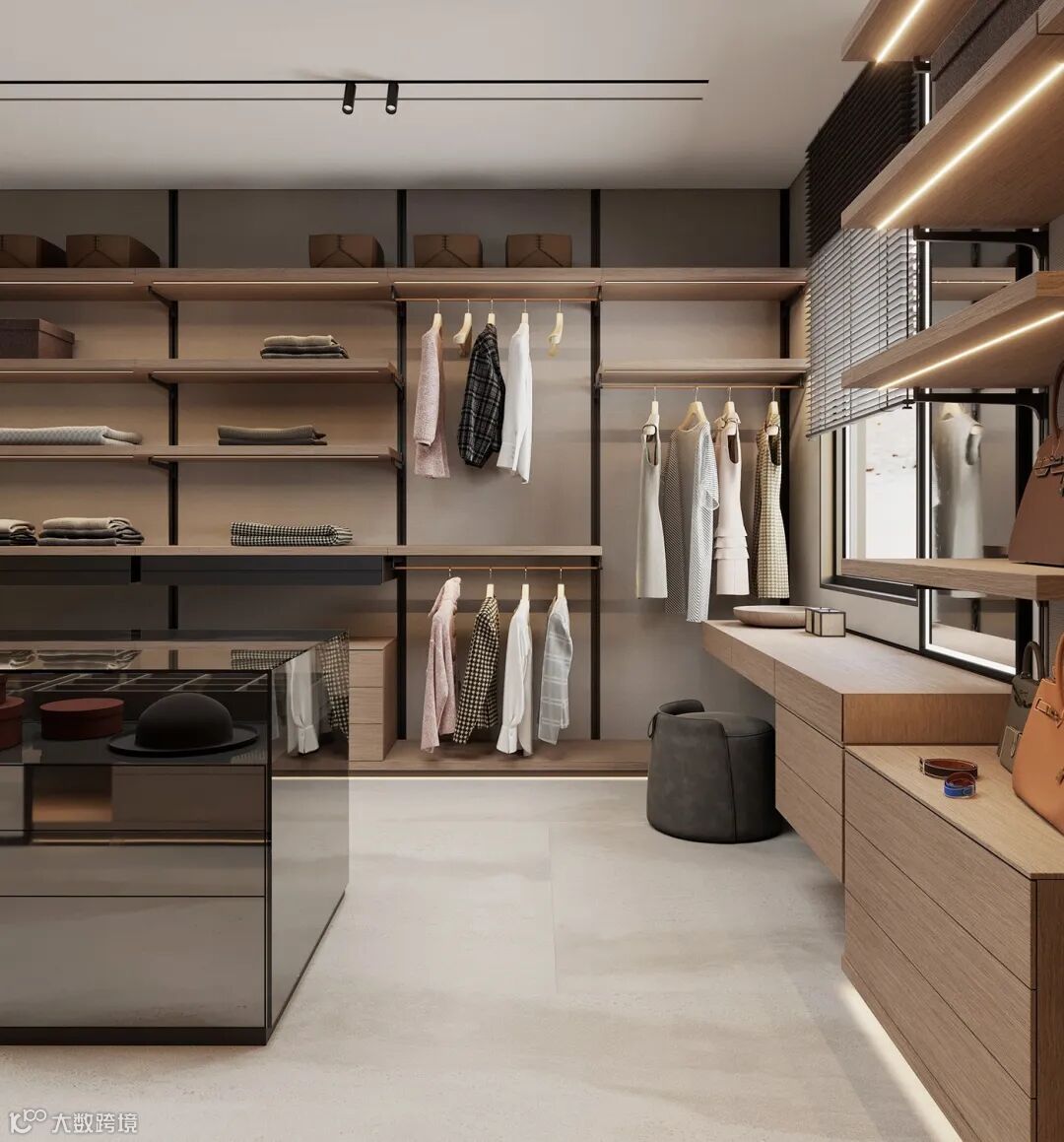 步入式衣帽间是家居环境中独立成间的,集收纳、换衣、化妆等需求为一体的封闭空间。
