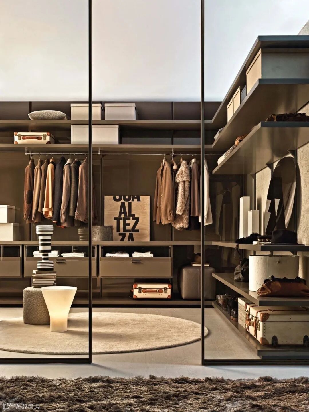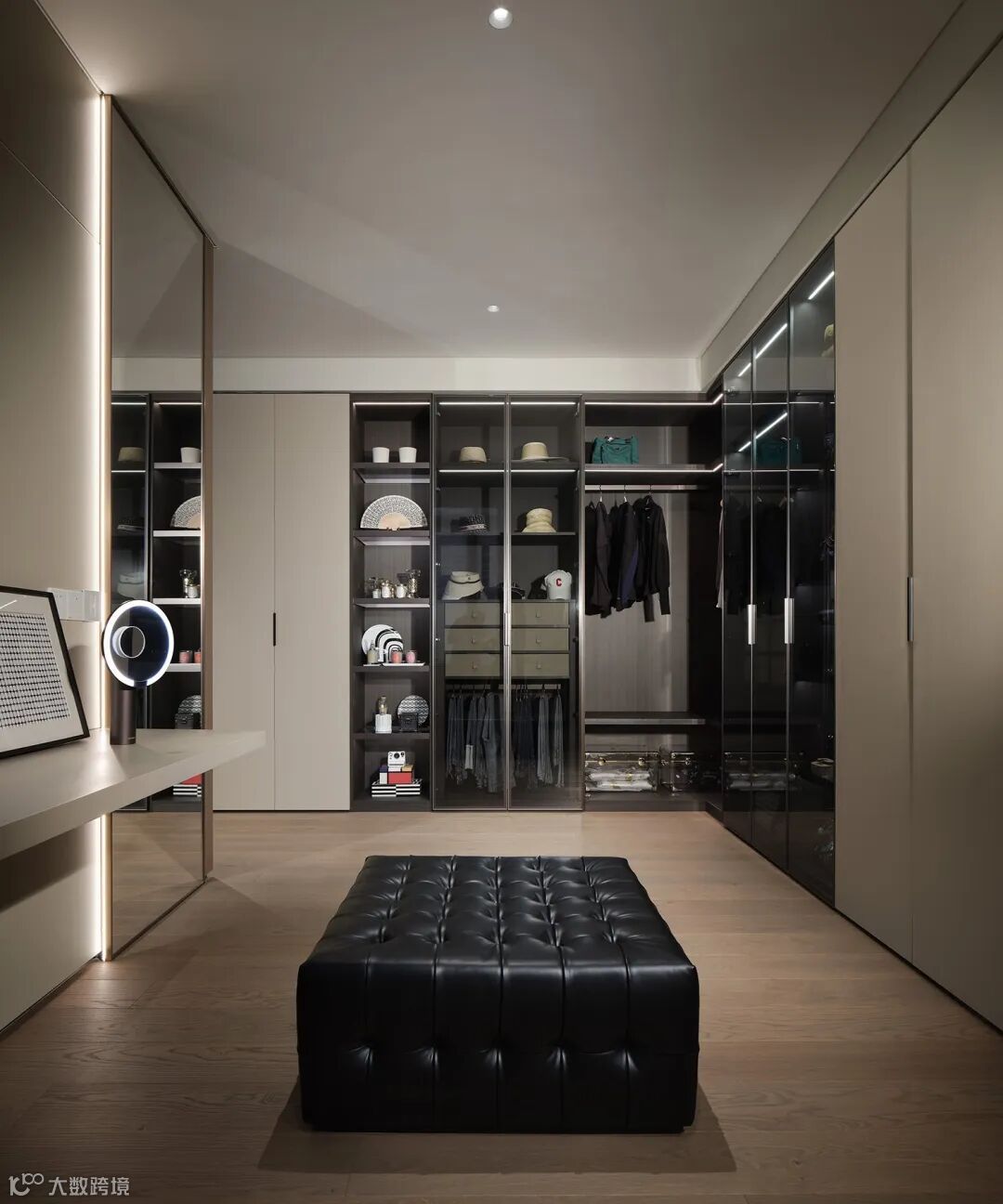 拥有一个独立式衣帽间,就像开辟一块新的自我休憩场所,能盛放下更多应用模块,封闭和开放的衣帽柜、大和小的置物隔层组合搭配,存放衣物的方式更多元化。