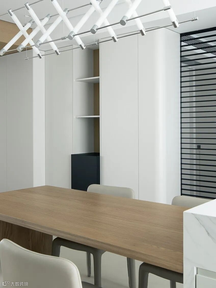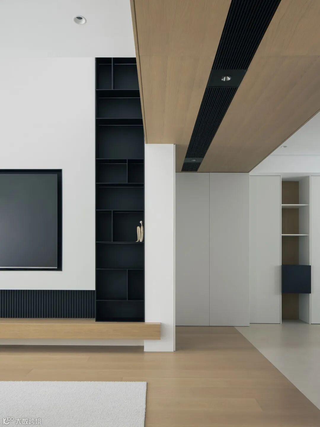 原木材质搭配黑白色调,质感温润,简约的设计更显高级,经得起时间的考验,大片的留白给予人纯透的语境,人与空间共存共生。
