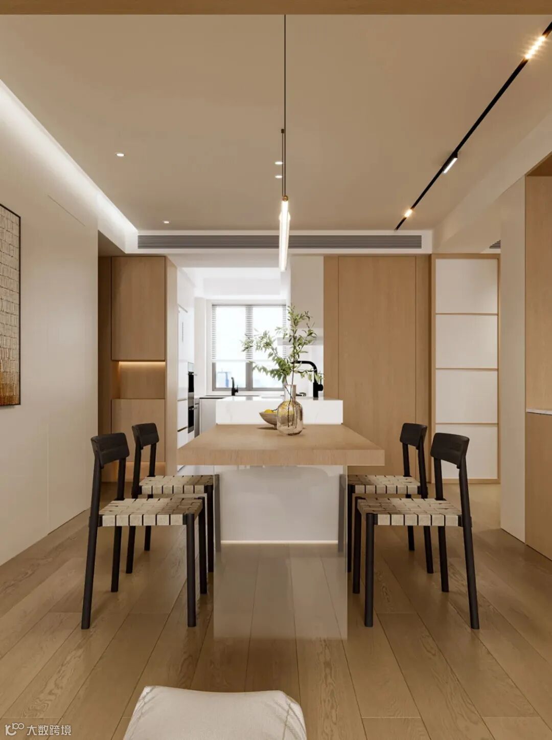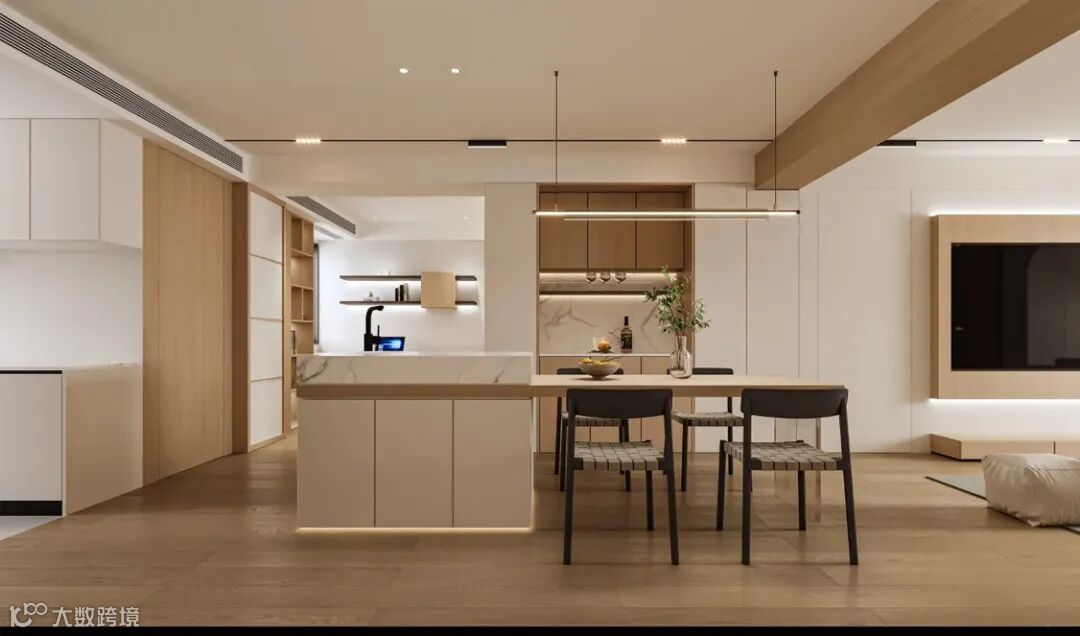 其让空间每一处细节都散发醇厚的木质气息。开放式厨房,其打造的柜体与墙面完美融合,既提供了充足的收纳空间,又展现出温馨大气的格调。