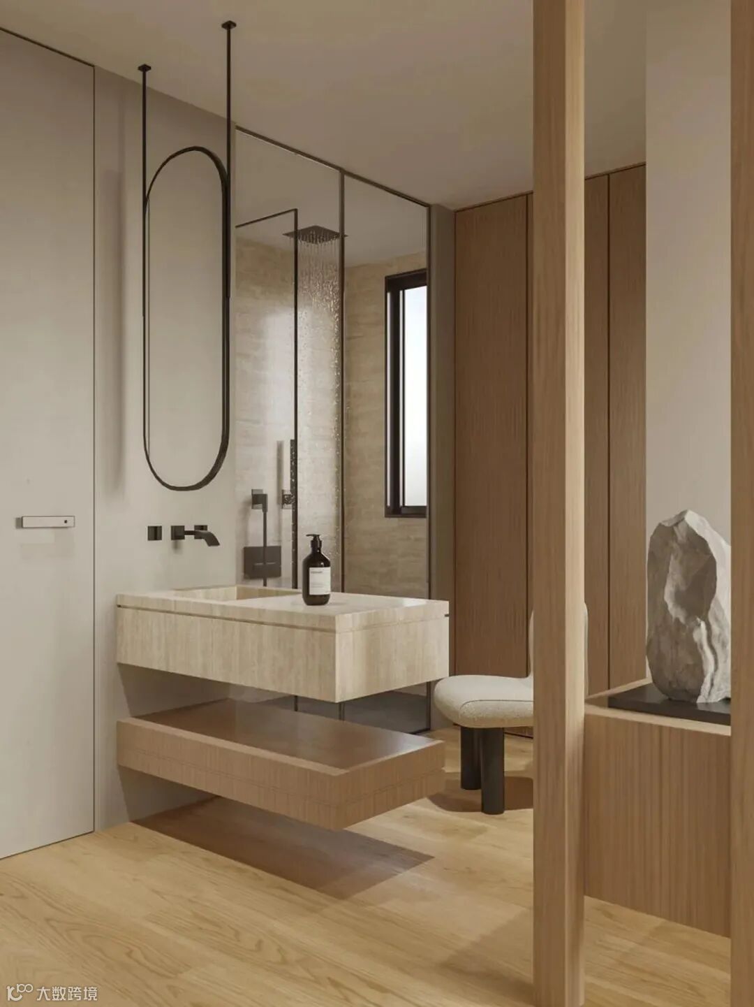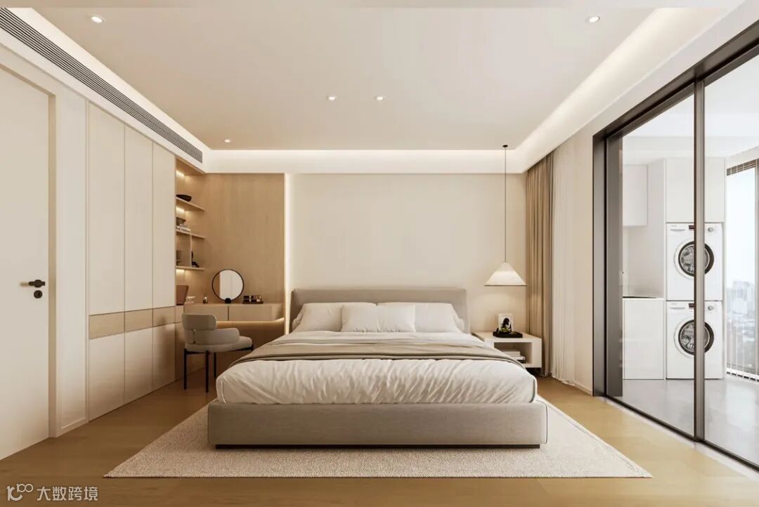 卧室是心灵的港湾。春树榆木的点缀展现出极致的温柔,在光影的映衬下,更显生动。
