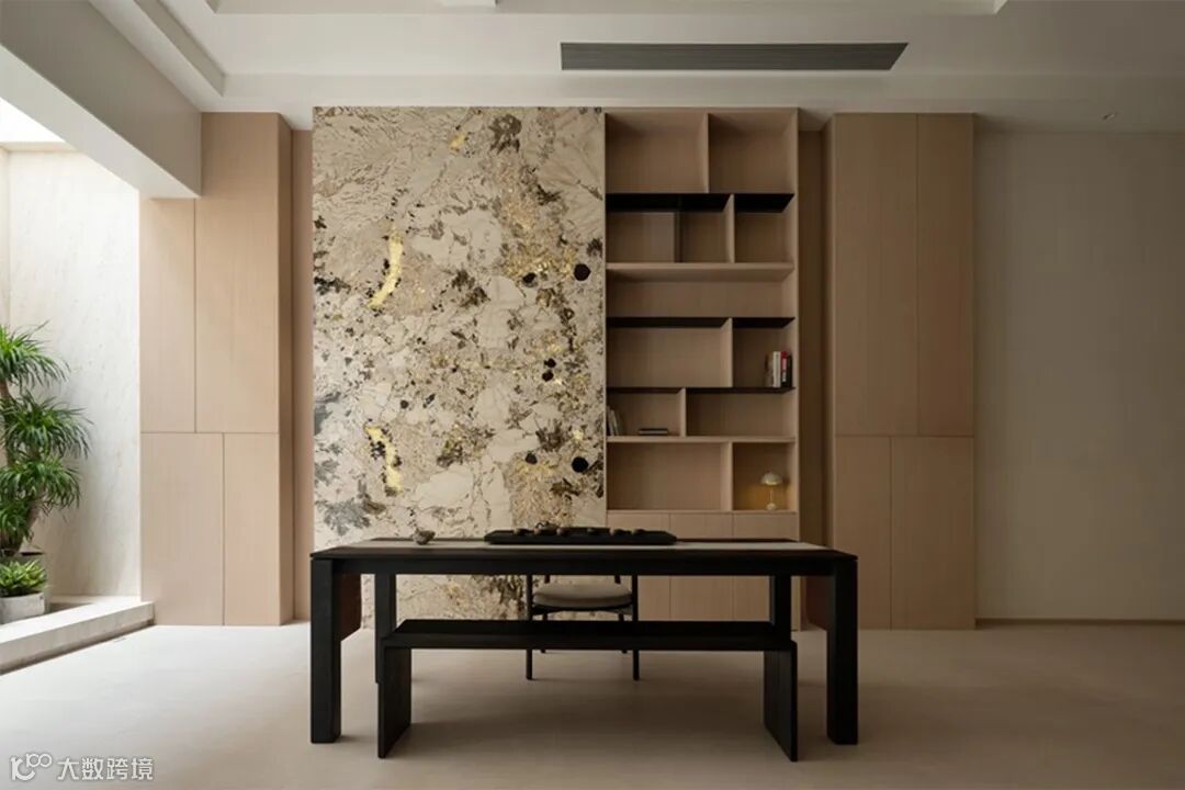 春树榆木,其天然纹理和色彩,更能让人感受到自然的质朴与静谧。茶室简约的设计,留白的墙面,让整个空间更显开阔与宁静。