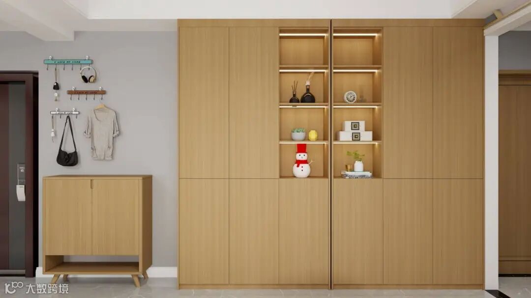 春树榆木,温暖的色调和直纹纹理,将温馨自然的亲切融入于玄关处,赋予了空间独特的视觉效果,带来实木高级感,让玄关处的设计更富有层次感和艺术感。
