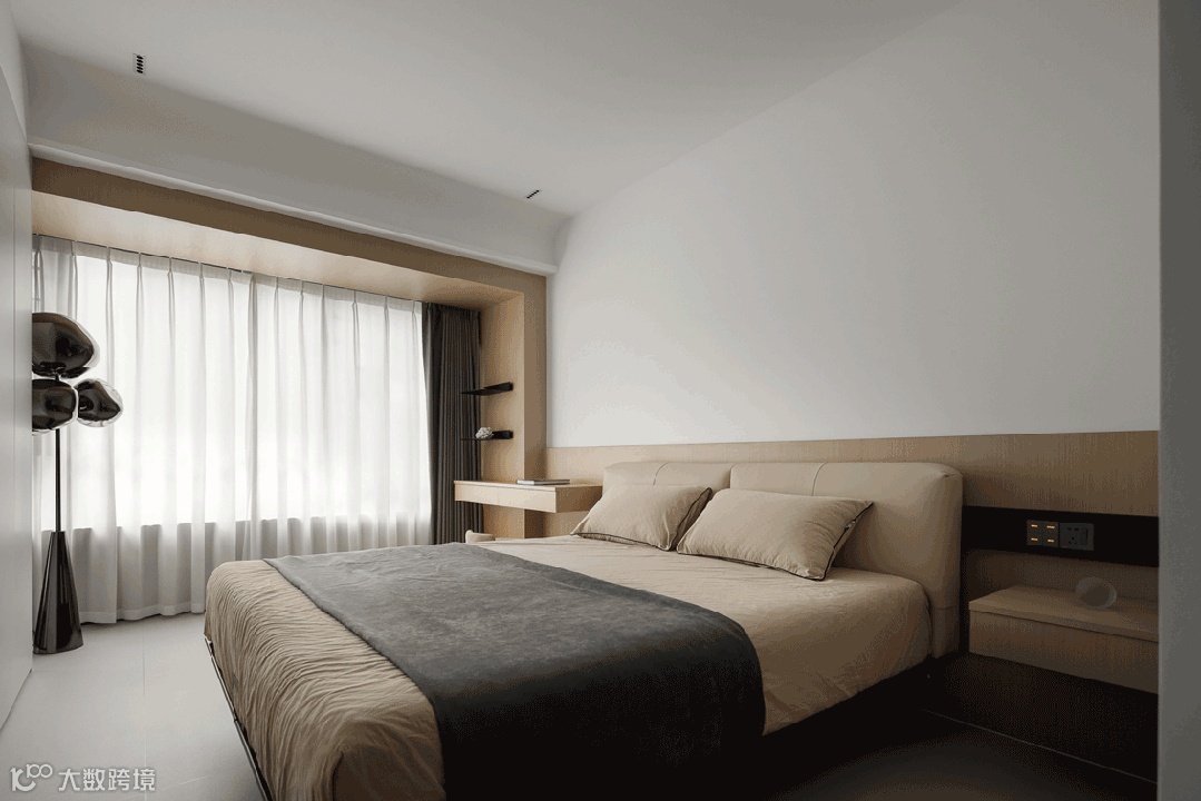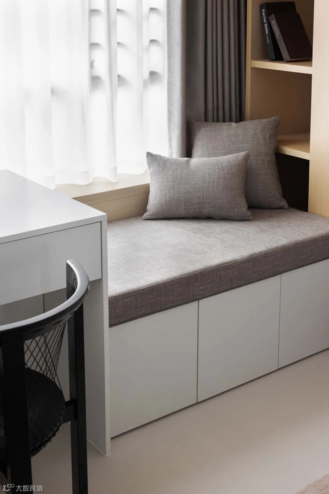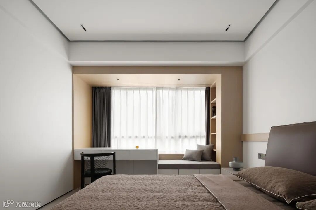 原木材质构成新景,以错落的结构过渡着书桌、飘窗、收纳空间,激发了空间的可能性,在审美与功能、简约与精致之间达到平衡。