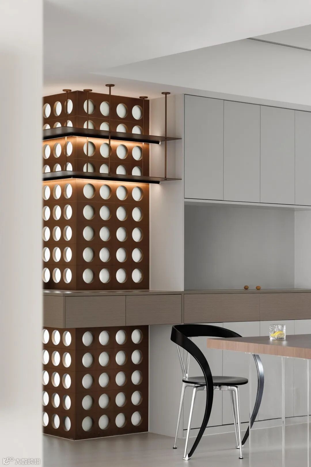 艺术屏风给予转角处明亮的采光,以点缀的角色丰富流转于不同空间的惊喜感。