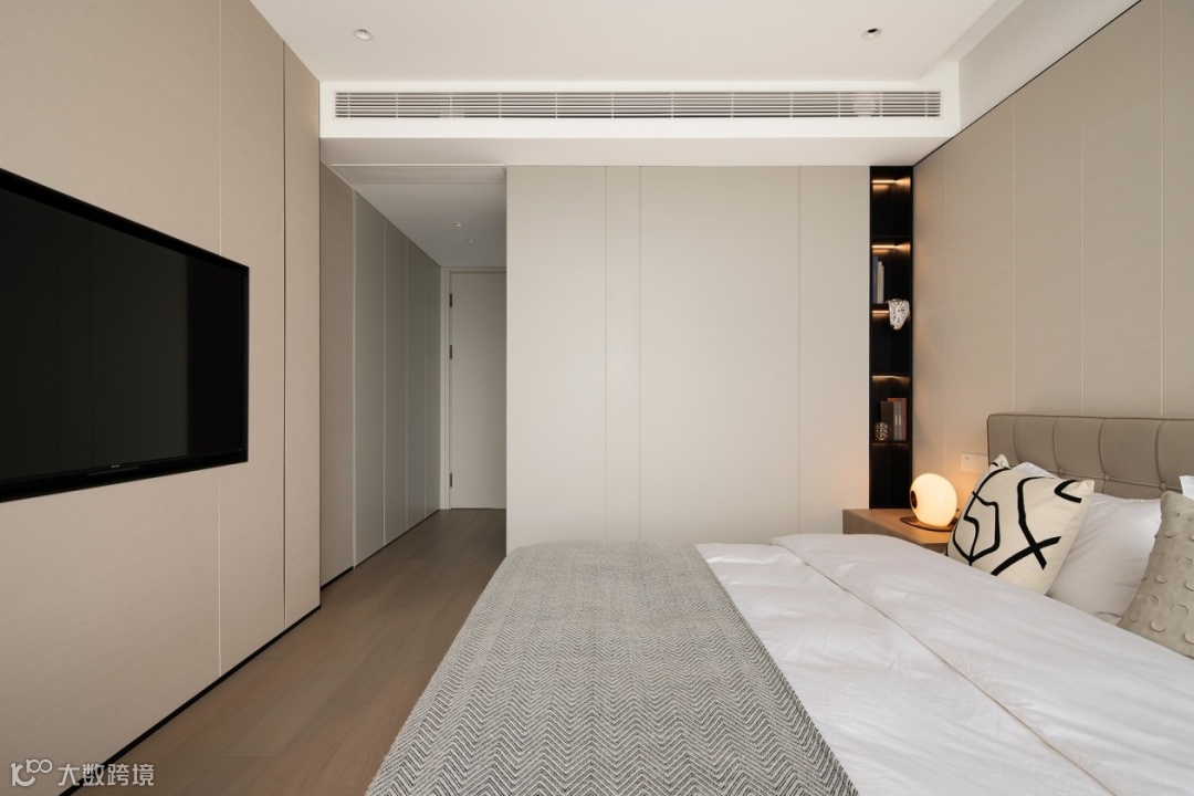 一门到顶的设计,整体性强,提升空间整体的视觉感,减少空间浪费,有效拓展储物空间,无把手的柜体减少了传统柜门的尖角边缘,更安全。