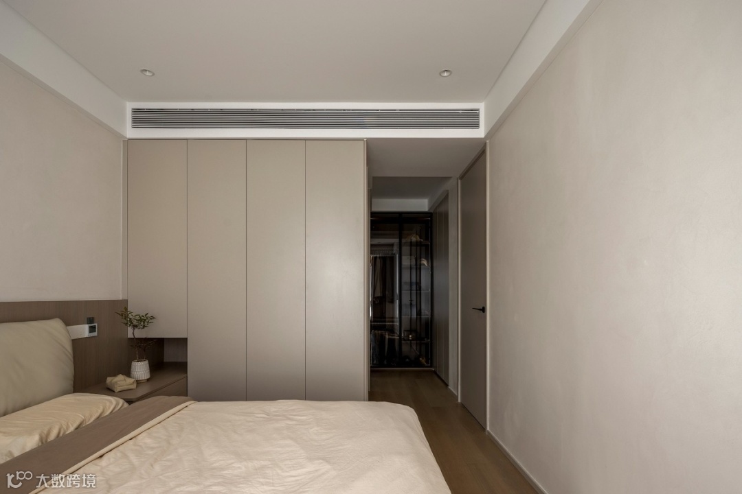 卧室装置玻璃门衣柜,很好解决了防尘问题,同时也让衣柜空间起到展示作用,玻璃柜门能很好地打通封闭空间,将展示物品都明朗呈现在眼前。