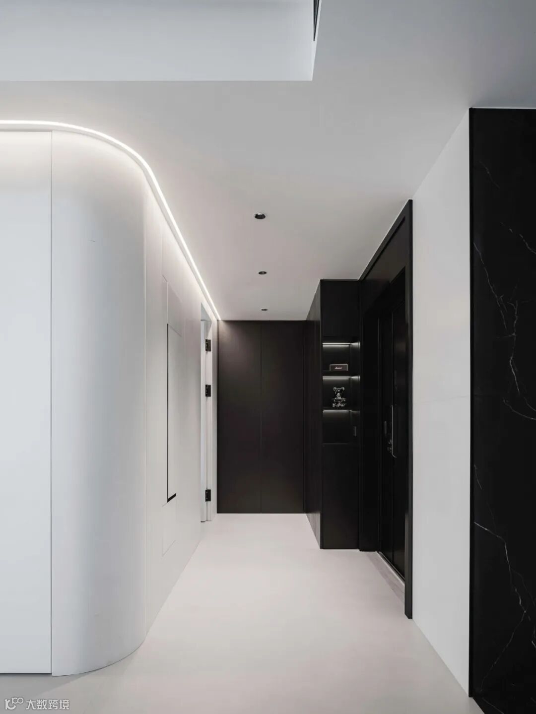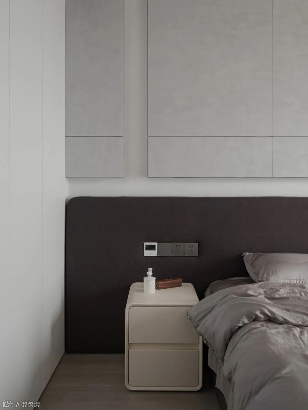 卧室除掉繁琐的装饰,用最简约的设计和黑白色调,描摹出低调、不落俗的现代高级感,给人精致高效、平静内敛的氛围感受。