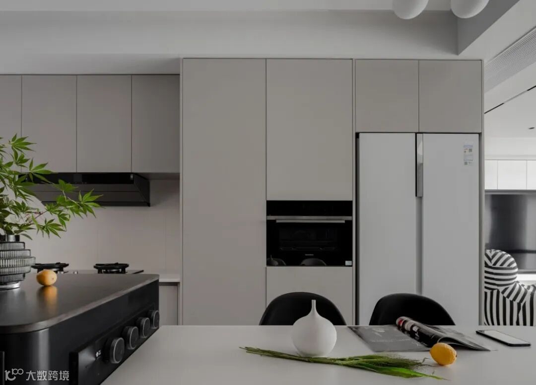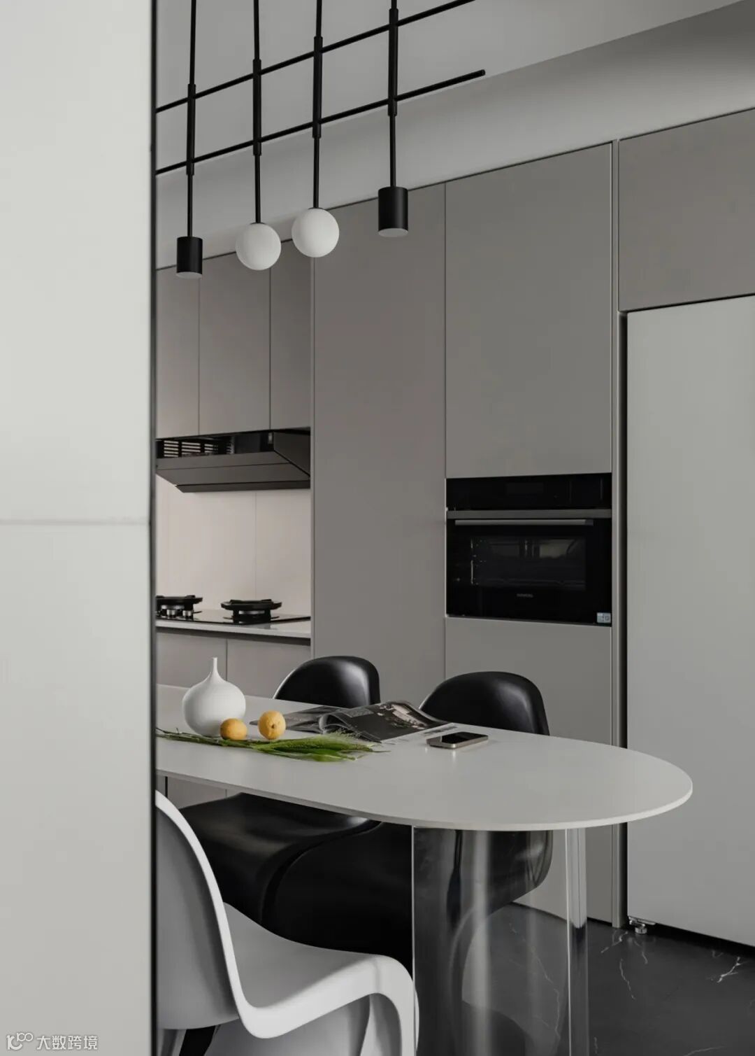 打掉厨房墙体,厨房与餐厅空间之间便没有了界限,餐厅空间与厨房空间便融合为一个整体,空间尺度上彼此互相借用,互相成就。
