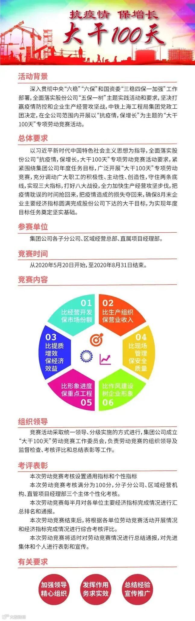 坚决打赢百日攻坚战,关键要打通施工生产“堵点” “难点”,安全优质快速推进施工生产。产值是收入的来源,利润的基础,更是企业经济运行大盘的“压舱石”。当前,集团公司部分项目施工生产依然面临资金紧张、劳力不足、材料短缺、征拆推进慢等诸多“卡脖子”问题,各单位生产系统要理清管理思路,瞄准关键工期,以严格、可行的施工计划保障生产。对于进度滞后严重的项目,后方公司要通过包保责任制、驻点帮扶等形式帮助项目理顺生产,加快进度。气可鼓而不可泄,各级党群组织要围绕“六比五保一树”劳动竞赛目标,充分发挥“党员先锋岗”“工人先锋号”“青年突击队”带头引领作用,组织发动广大员工迅速投入生产大干。工程项目部要始终绷紧安全生产这根弦,强化安全管理,坚决遏制各类安全事故,同时严把工程质量关,以工序质量管控保实体质量创优。