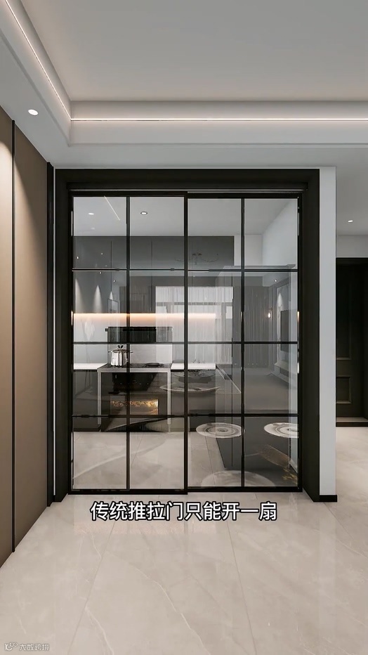 In the past, the kitchen was small, and the traditional sliding door could only open one door. The refrigerator was not aesthetically pleasing to the eye, and the space above the refrigerator was also wasted. The closet door in the flue was blocked and difficult to open, and the countertops were piled up. The kitchen was in a mess, it is not convenient to operate in the kitchen.