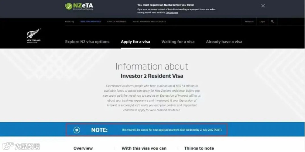 现行政策下的投资一类(Investor 1)和投资二类(Investor 2)新申请将在2022年7月27日晚11:59关闭,在此之前递交的申请不受影响,将根据当前政策评估。