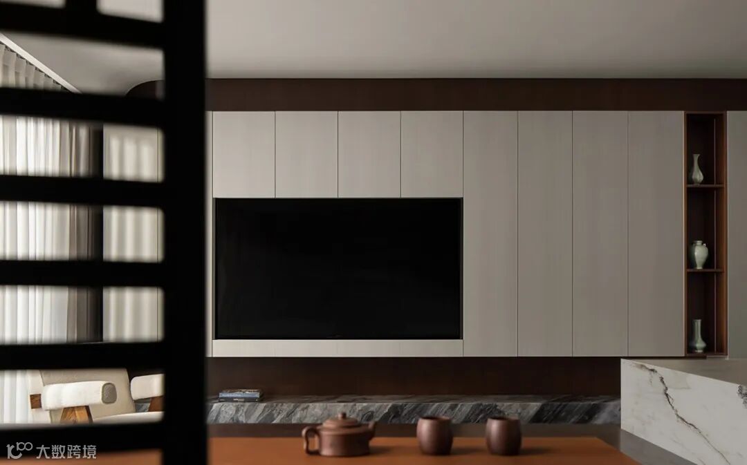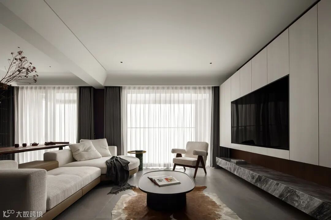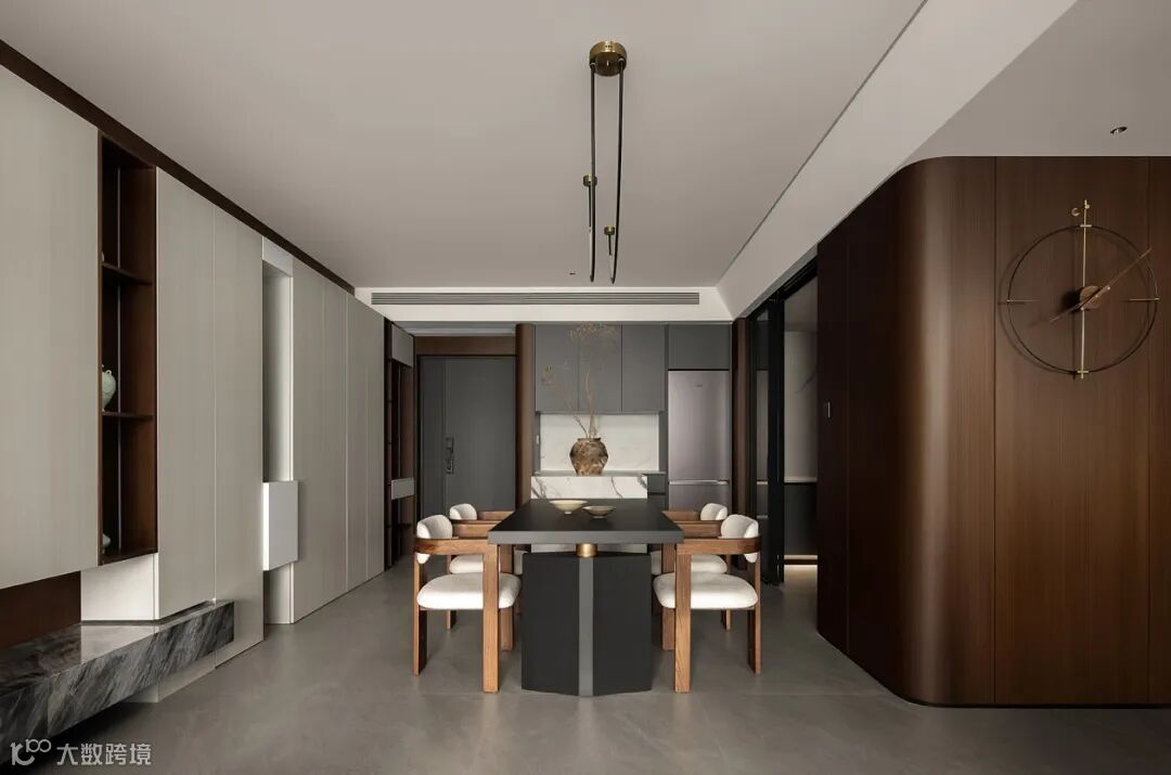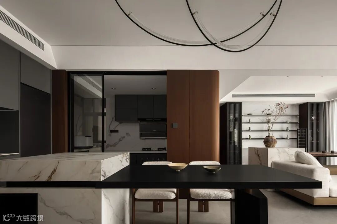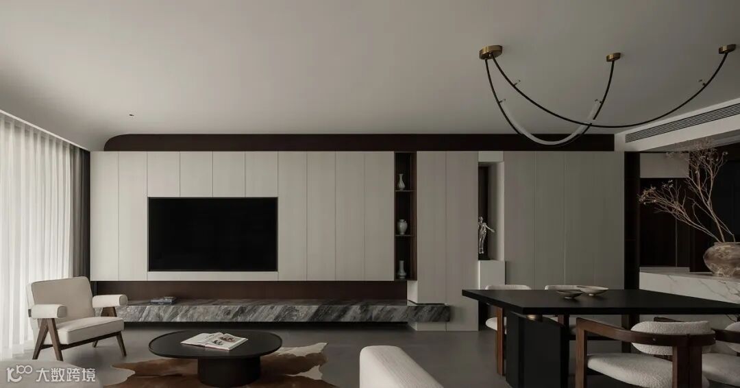 客餐厅以布局强调空间的叙事力,糅合温润质感与纯粹色彩,时刻准备着刻录家庭生活的点点滴滴,退而静雅,进而畅通。