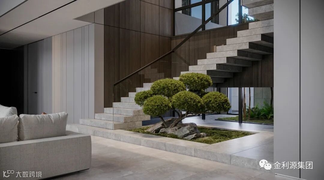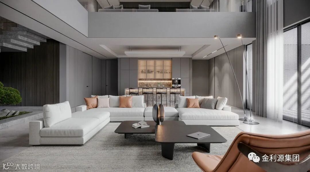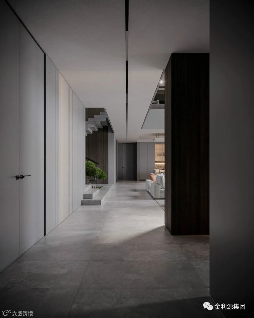 强调通透开放的生活居所。暖白色自然舒适的色彩柔和了空间。