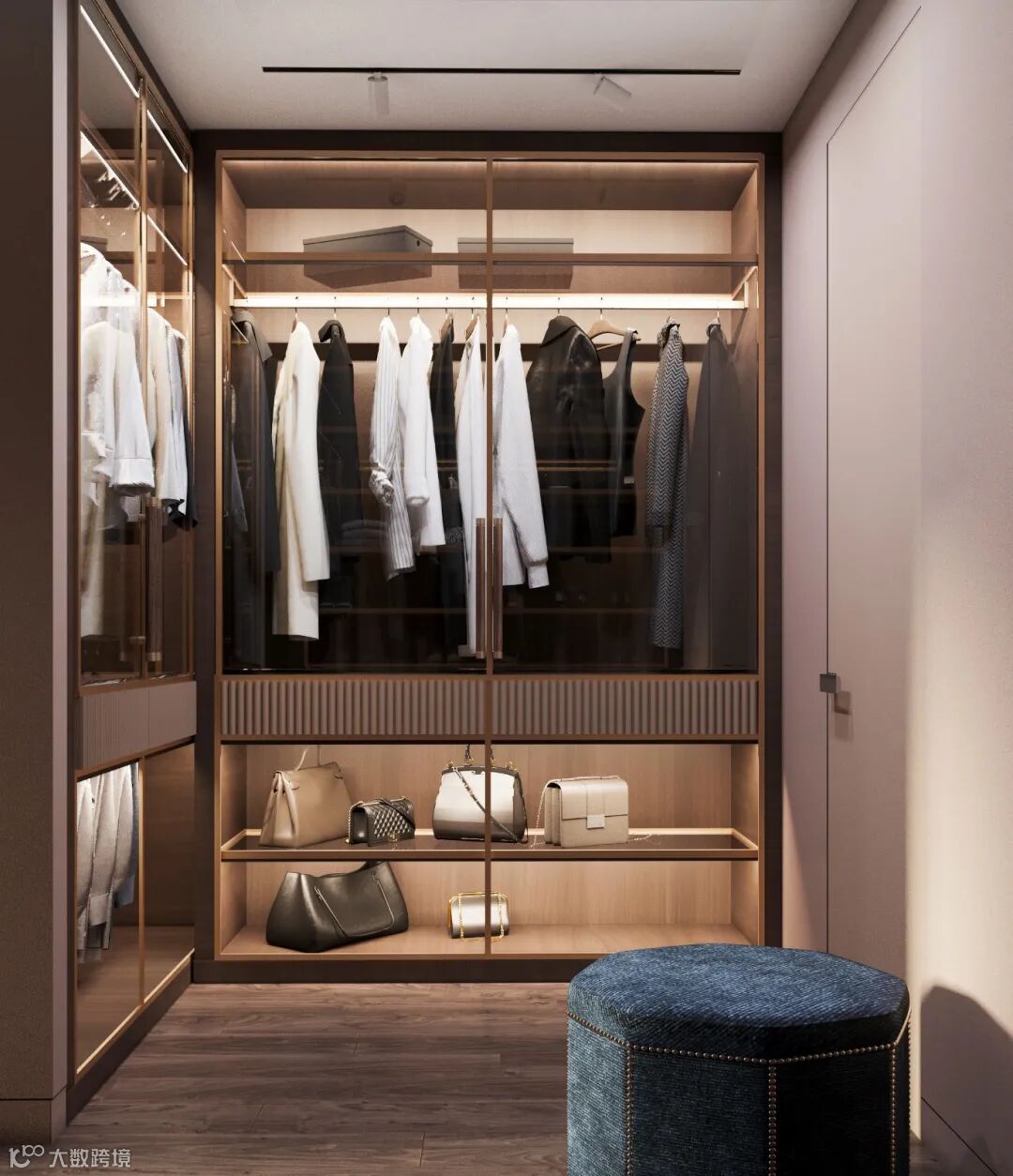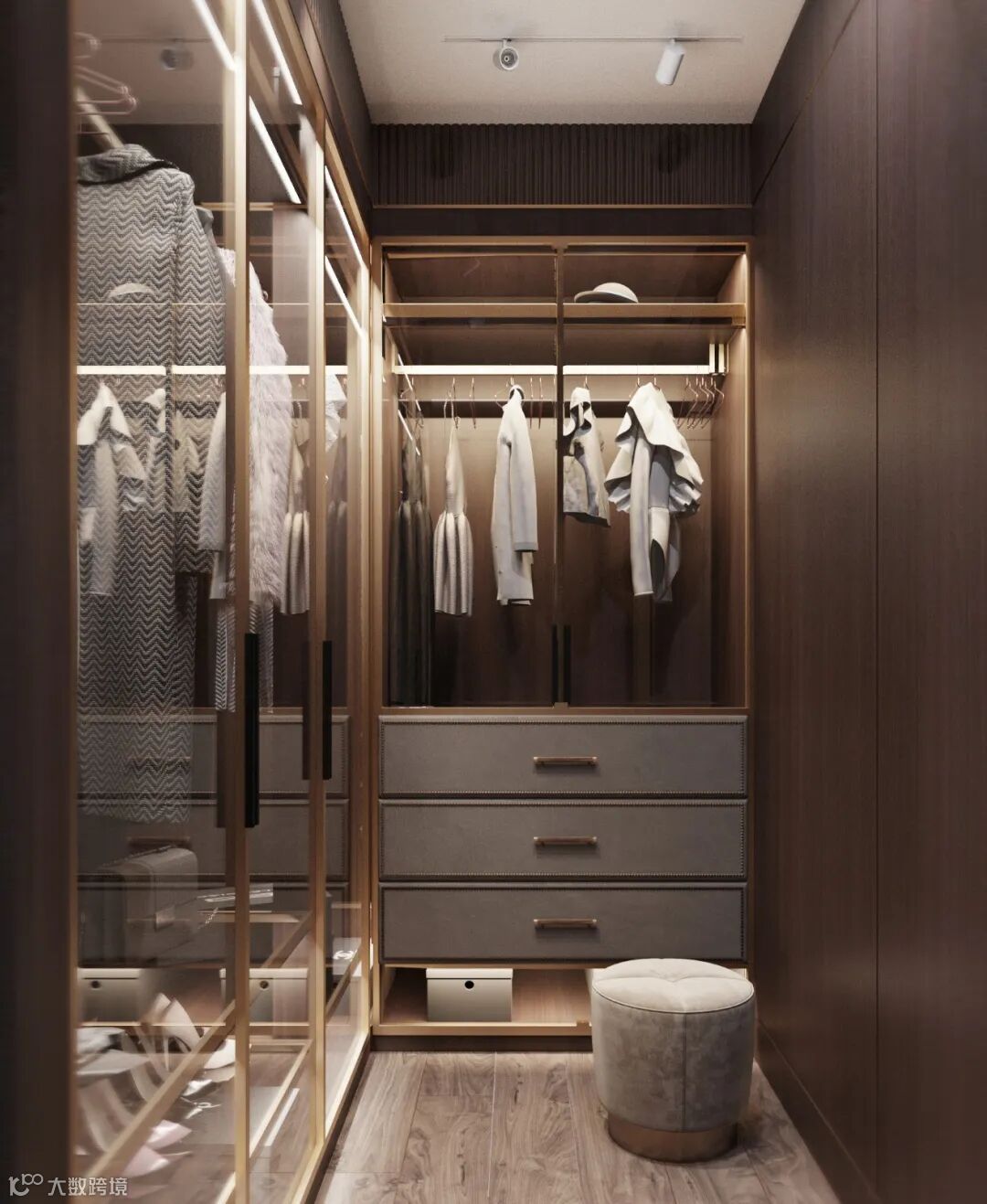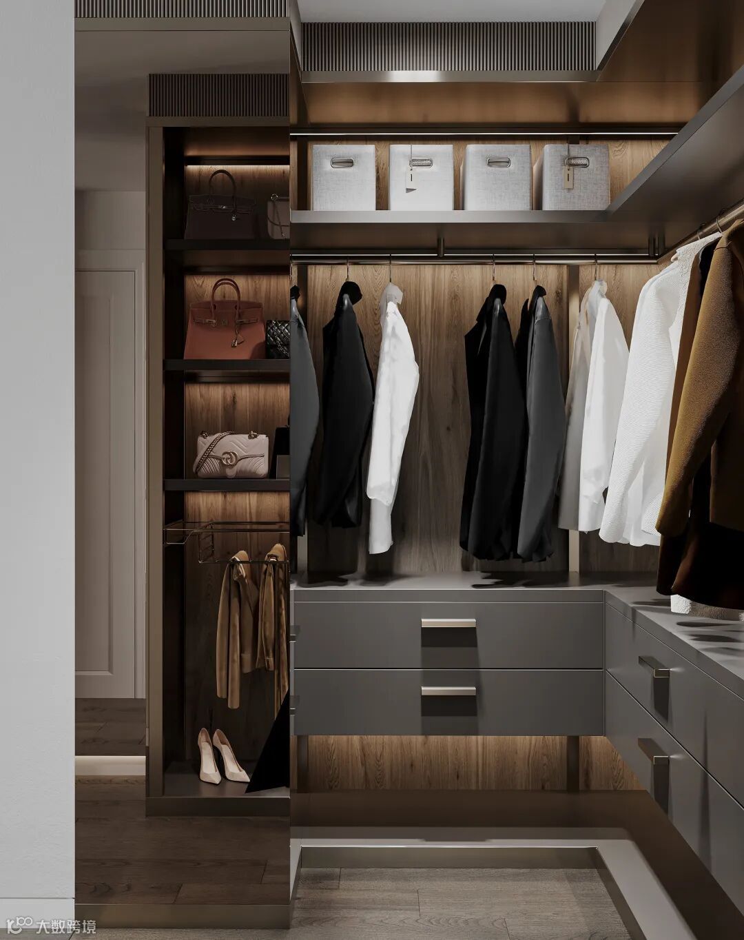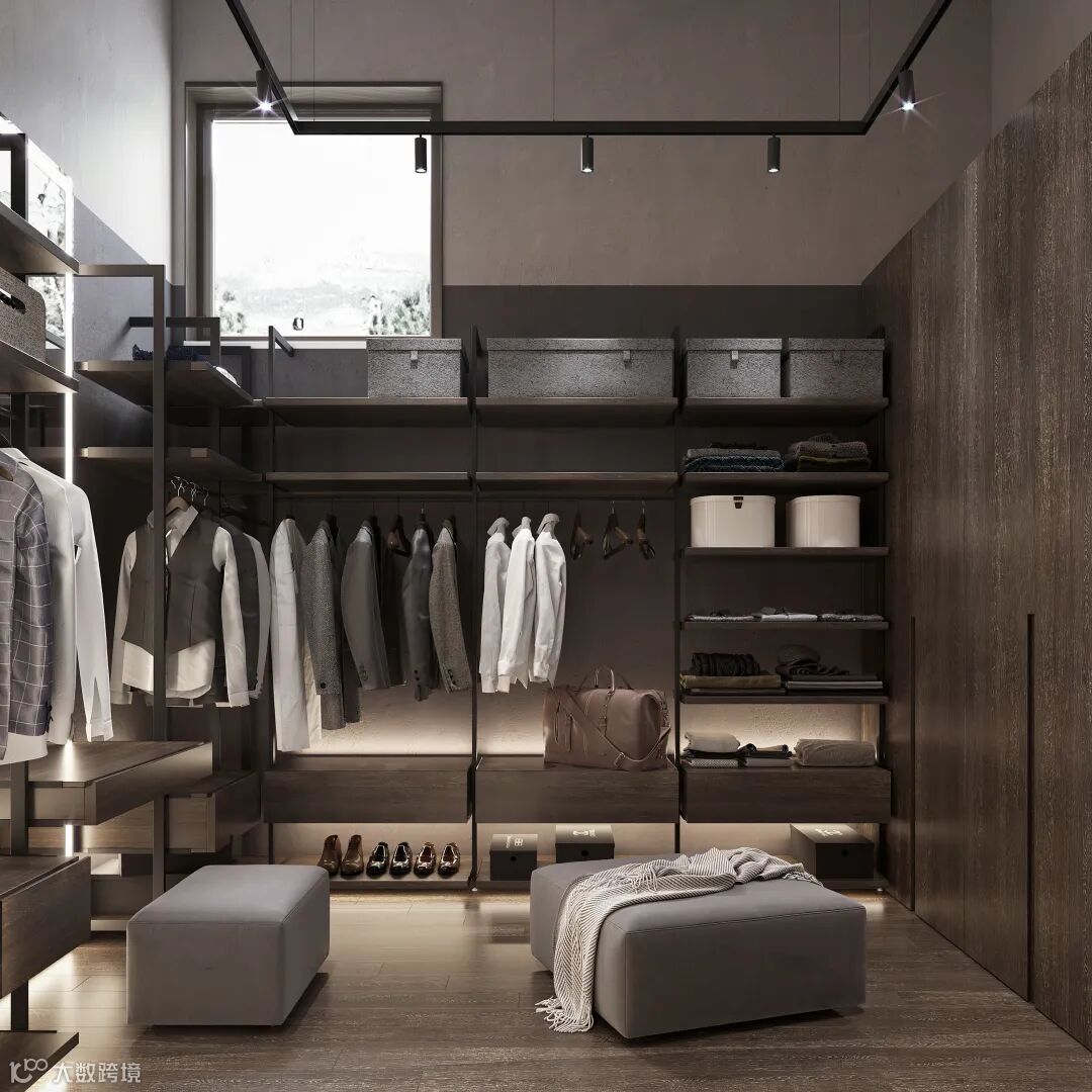 衬板:将衣物或配饰放在带滑轨的推拉衬板中,搭配、取用一目了然。