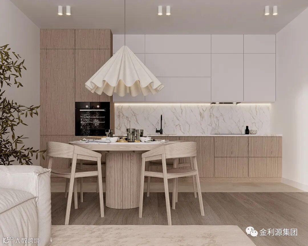 隔板宽度也要依照日后所放物品的宽度来设计。想要在隔板上放调味品,宽度在16-20厘米足够用;但要是放置小家电或者餐具,宽度至少要20-30厘米。不过隔板的宽度别超过吊柜。