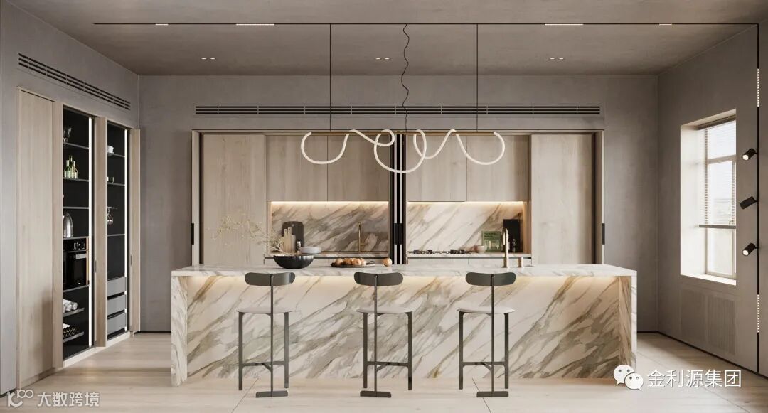 吊柜的高度如果太高,深度太深的话,就会存在一个问题,拿取不是很方便。而下柜因为嵌入式电器较多,加上管道走向,其实能做收纳的地方也不算多。