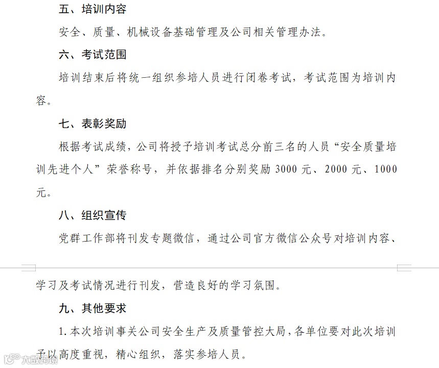 近期,物资贸易管理中心还将组织公司属各单位进行安全质量及机械设备管理业务培训,切实提高全公司安全、质量及机械设备的管理水平。