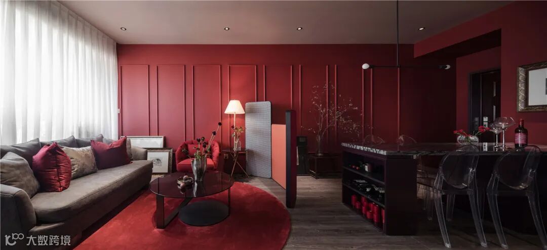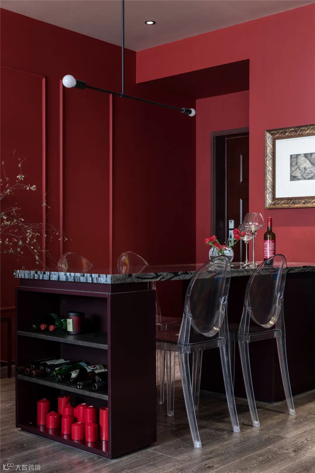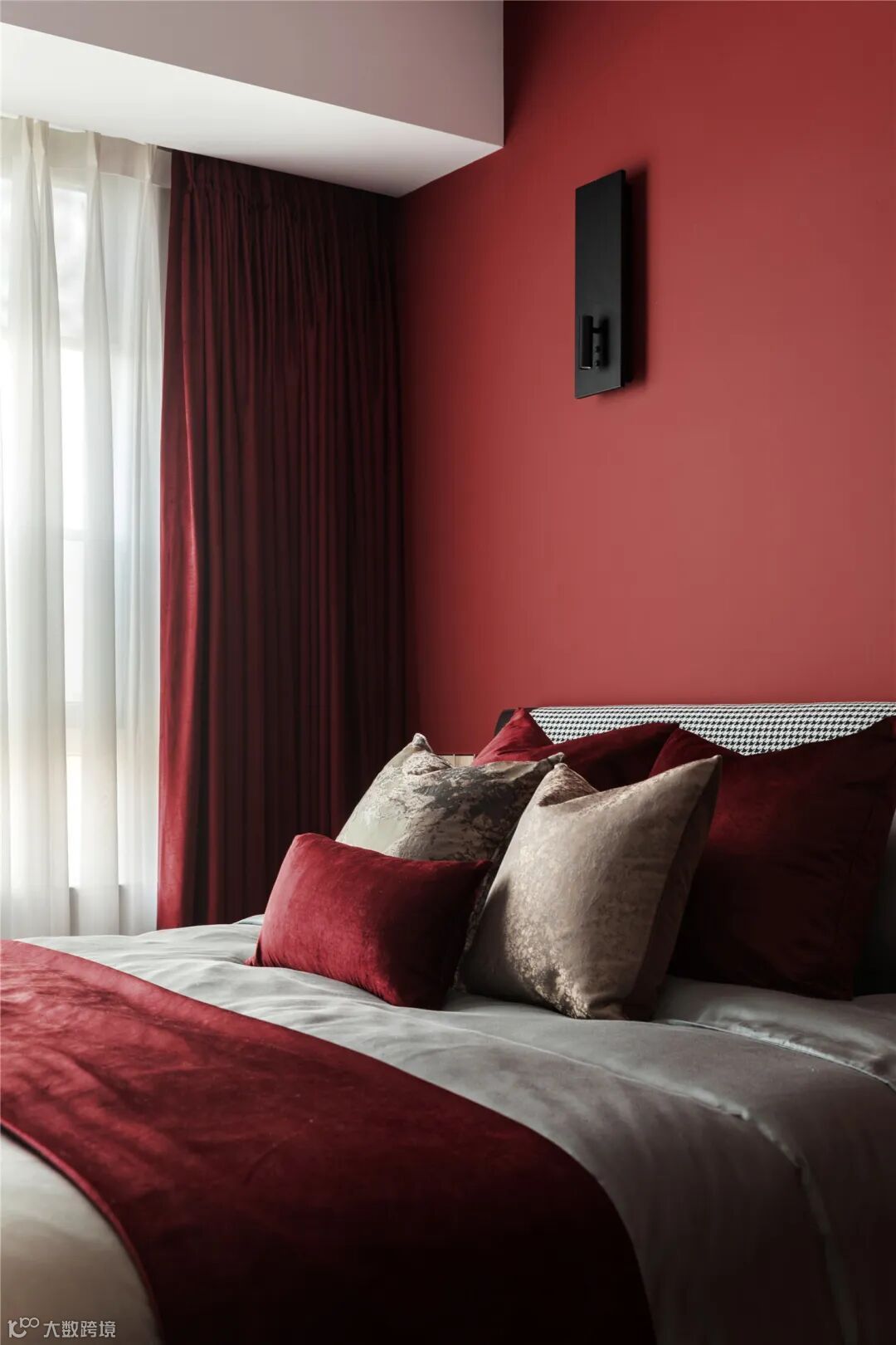 当然,在家里敢于用一整面红墙的人到底是少数。单独辟出一小片区域,不要让多种红色出现在同一空间里,不然会造成视觉混乱与疲惫,让人身处其中,心生烦躁和压抑感。