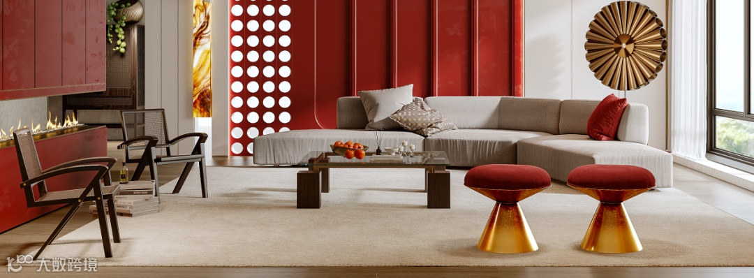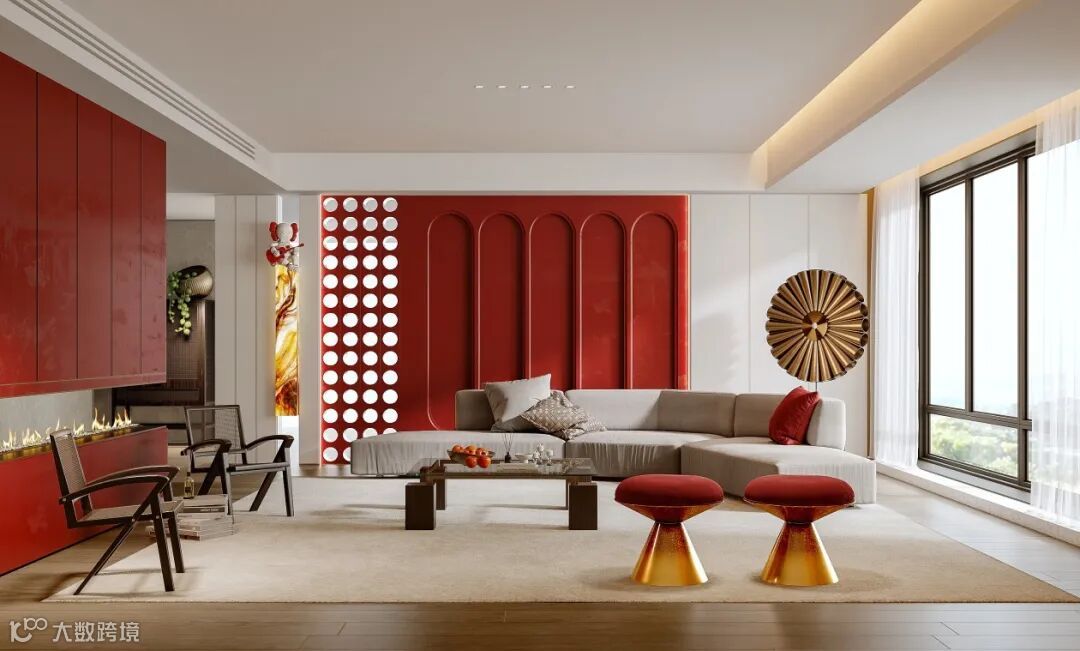 如果说上面所讲到的大面积红墙或红与不同颜色搭配,仍然需要一点技巧的话,那么利用家具配件做小面积点缀的方式,就容易上手很多啦!