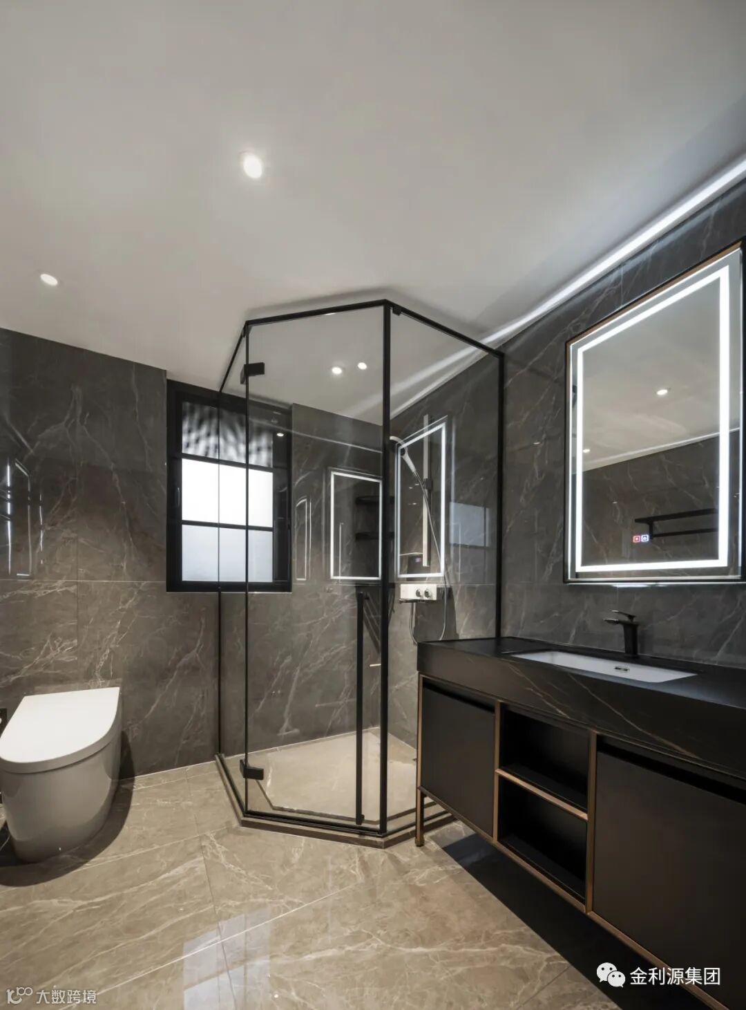 在面积允许的情况下,功能区明确划分,三分离的设计,双台盆,马桶间,淋浴间,彼此独立互不干扰。整体设计上也更加清爽,整洁。