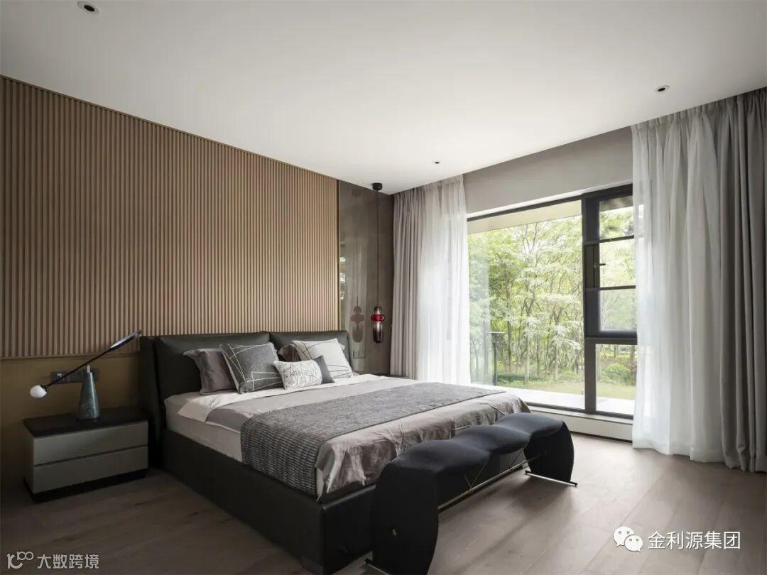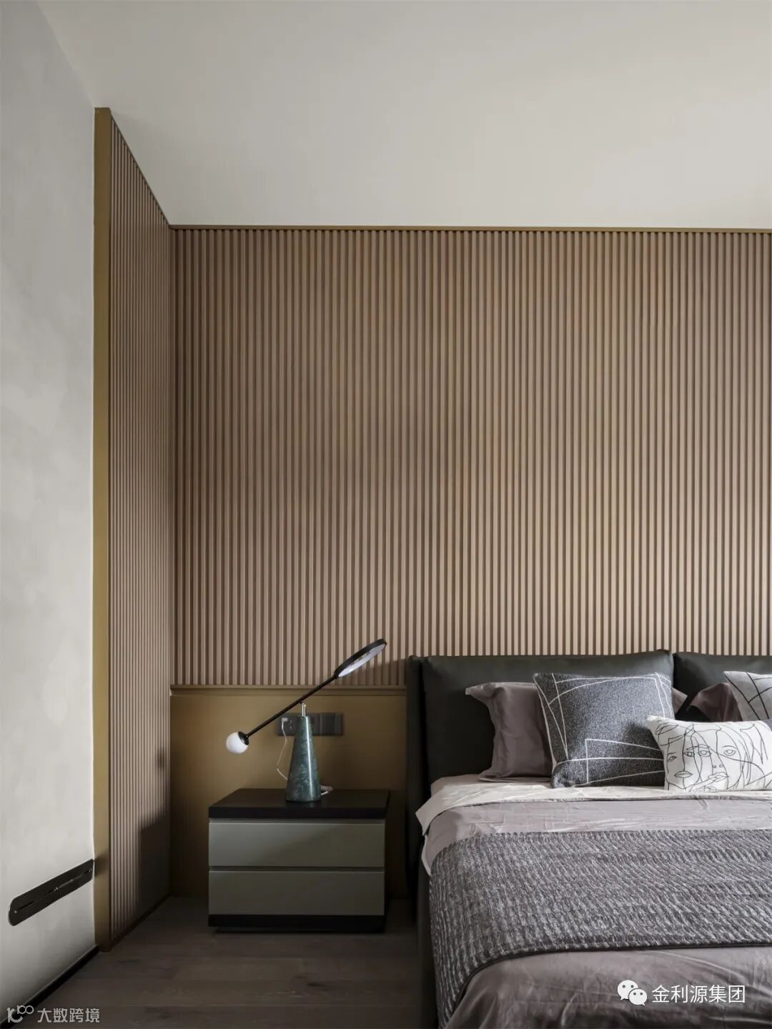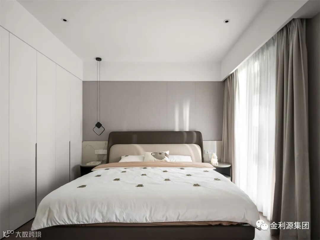 主卧没有任何多余的装饰,摩登、大气,无主灯设计,细节灯具局部照明,渲染温馨气氛,柔软,细致,一切恰到好处,表达艺术时尚、极致雅奢的生活主张。